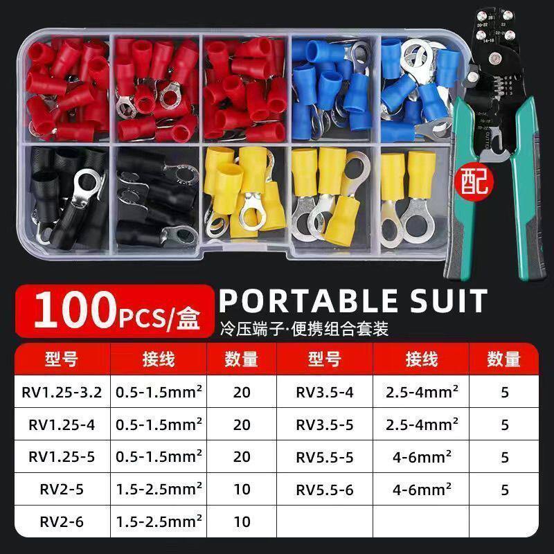 RV冷压端子电线O接线铜鼻子预绝缘线耳100只套装断线钳多功能黄铜