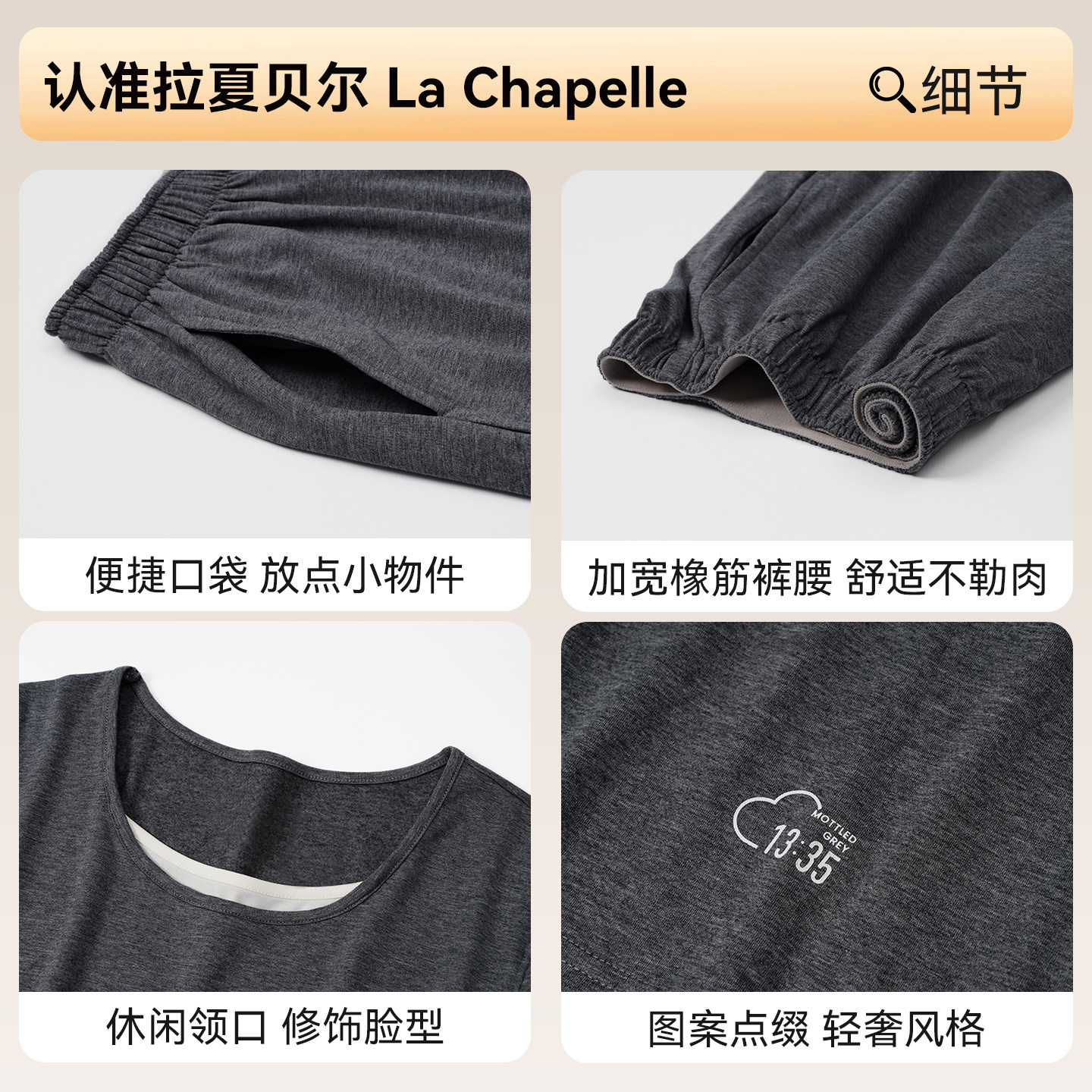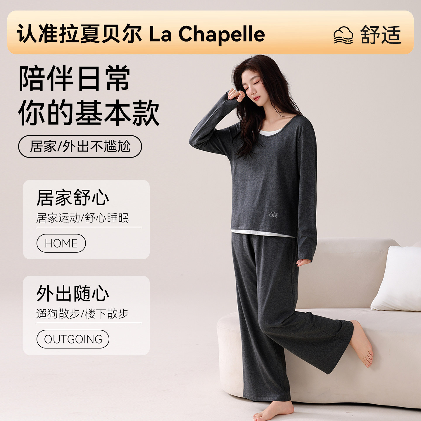 拉夏贝尔睡衣秋女款2026新款带胸垫女士可外穿长袖简约家居服套装
