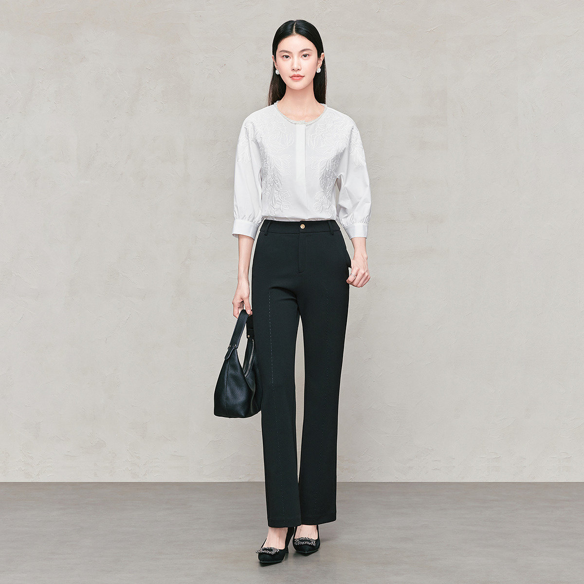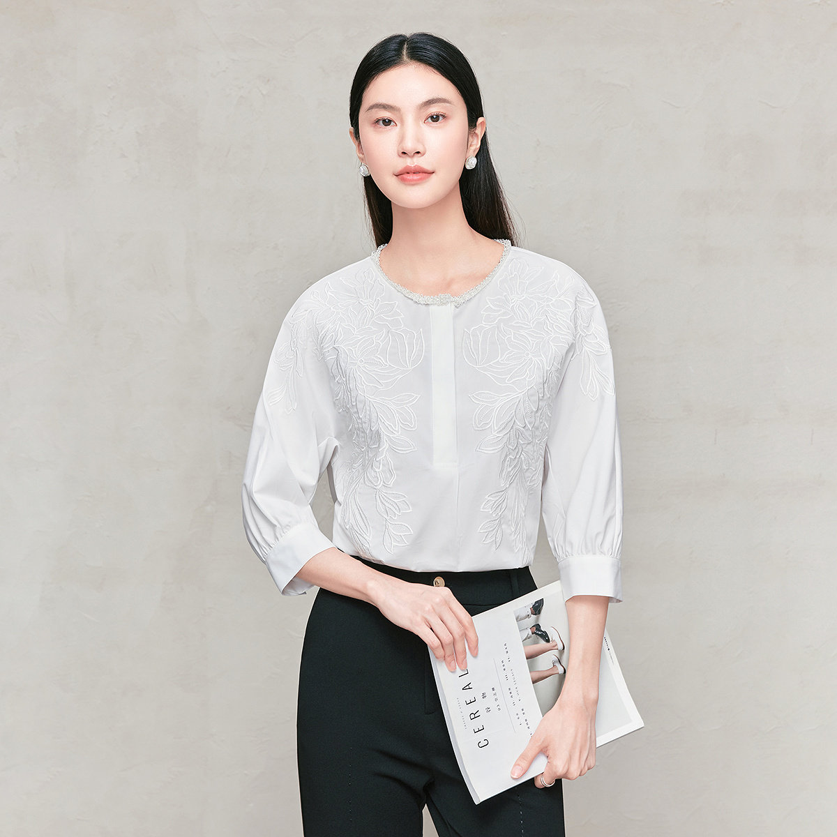 FINITY菲妮迪雪纺衫2025年秋季新款简约气质圆领白色优雅上衣女