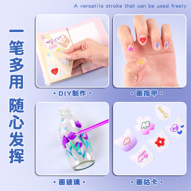 彩色闪光笔学生用儿童闪亮轮廓闪粉高光水彩笔啫喱发光流沙银光