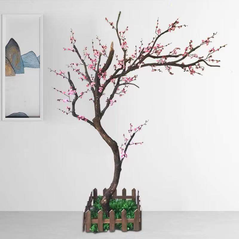 仿真梅花树室内客厅装饰装修软装别墅庭院落地花艺品室内树木栅栏