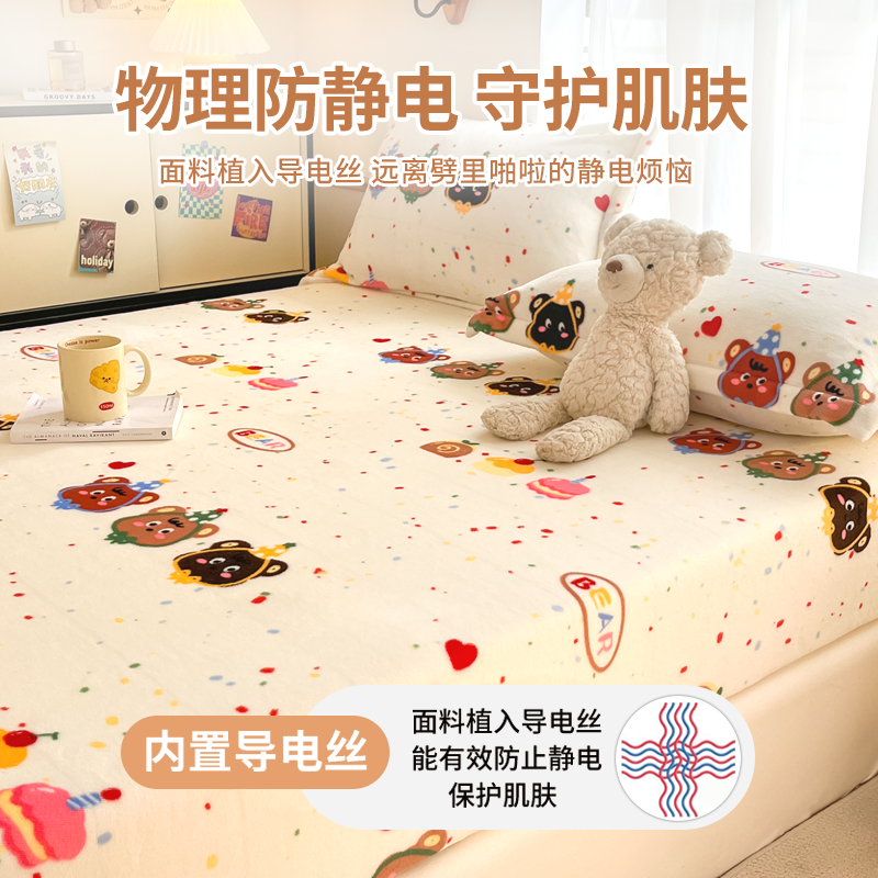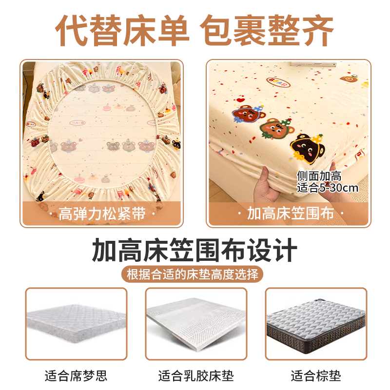 冬季牛奶绒床笠单件儿童珊瑚绒床罩保暖床垫保护罩席梦思防滑床单