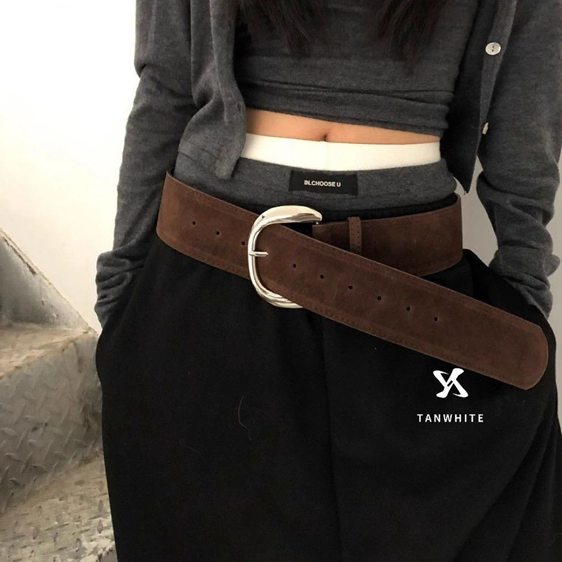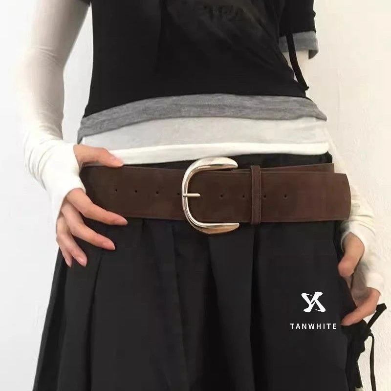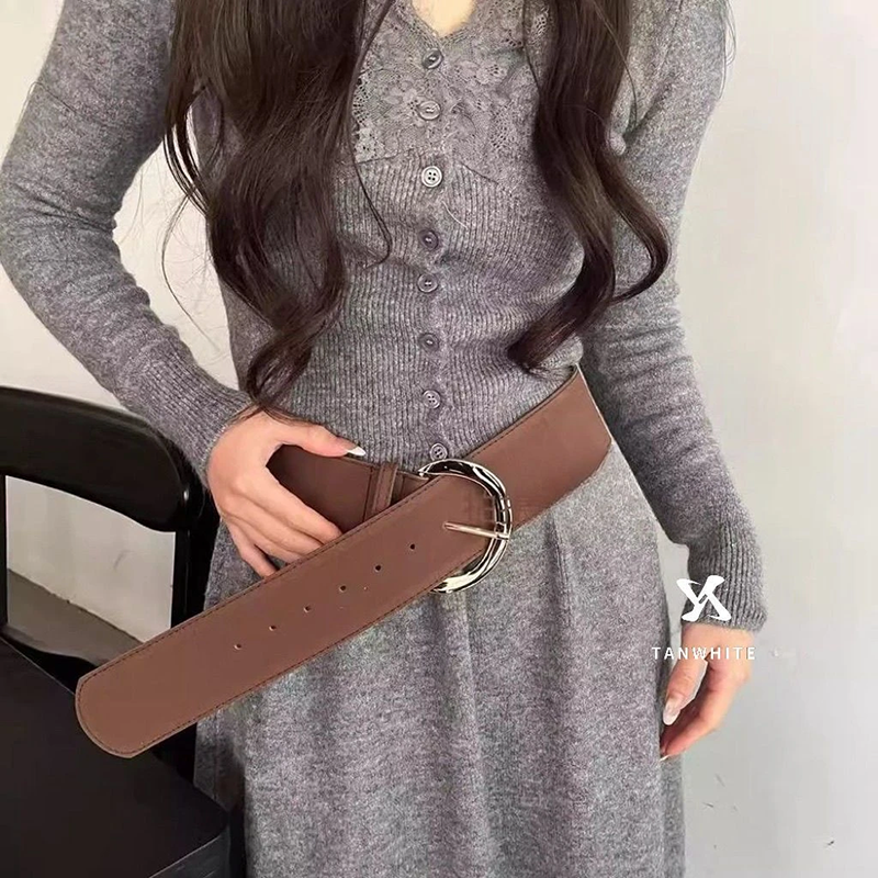 小众复古咖色PU宽腰带废土风风女款腰带粗款加宽百搭时尚金扣银扣