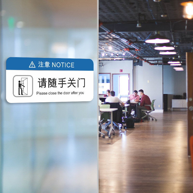 亚克力请随手关门提示牌非相关人员禁止入内指示标识工厂车间仓库房必须戴安全帽戴防尘口罩安全警示标志牌子