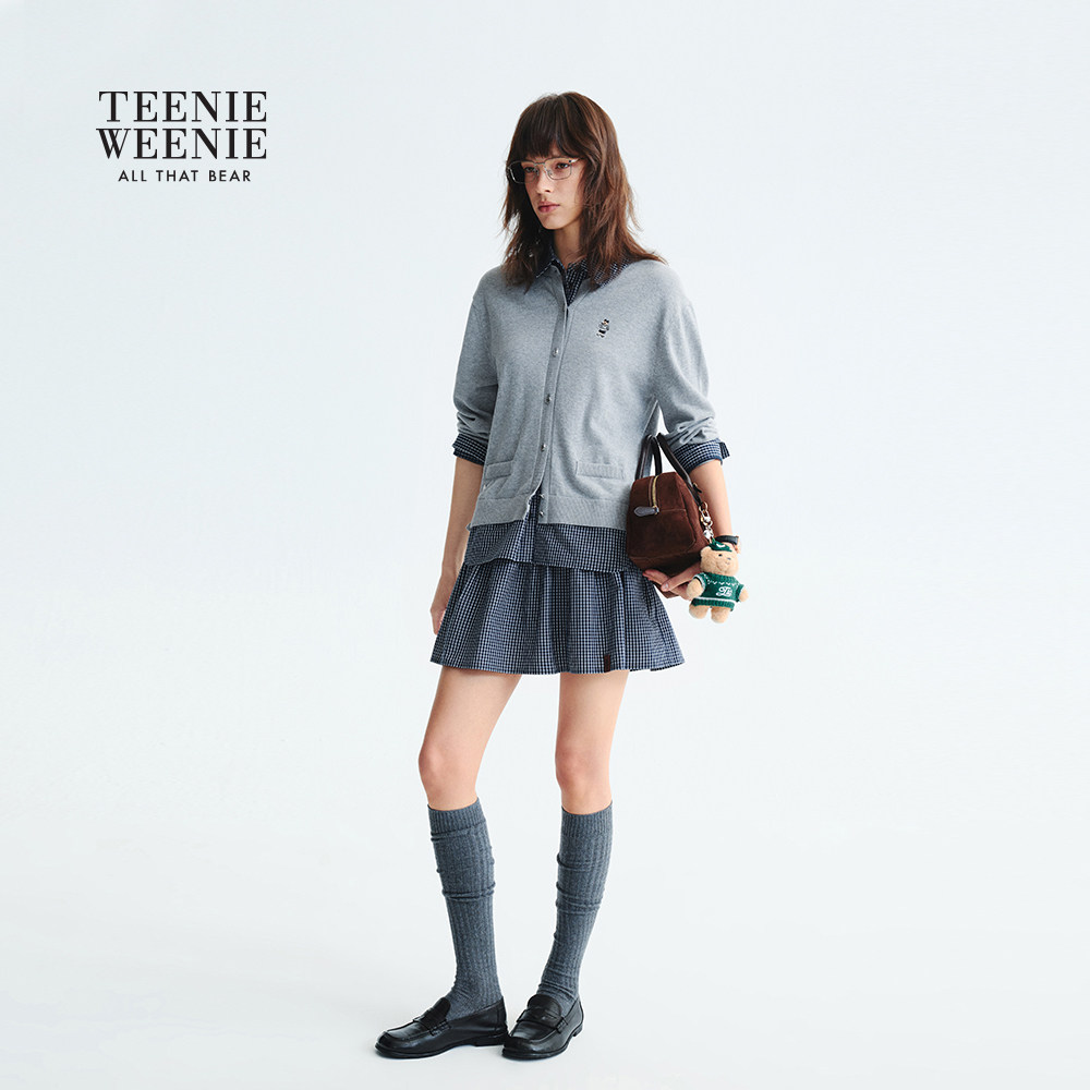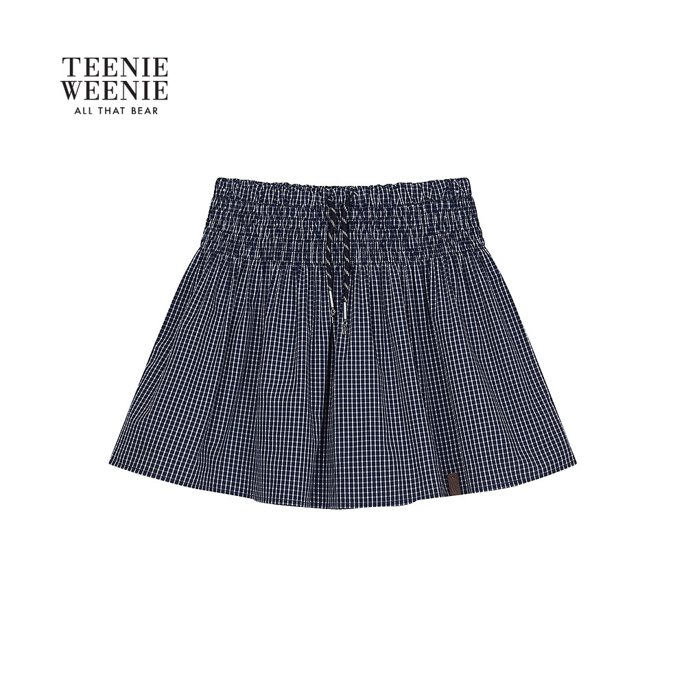 TeenieWeenie小熊女装半身裙2025秋季新款甜美俏皮约克褶格子短裙