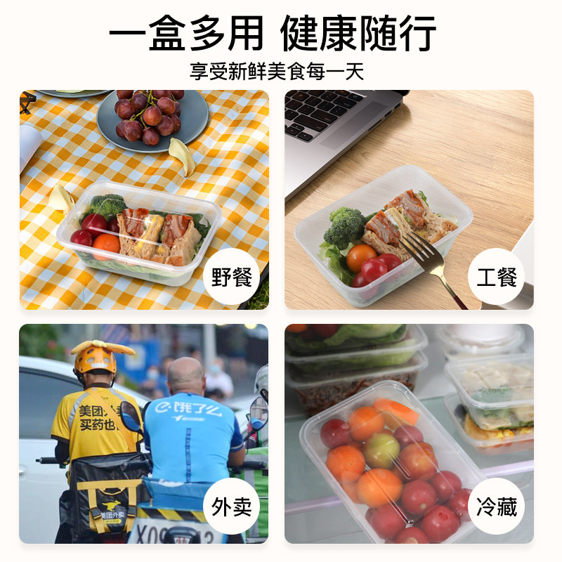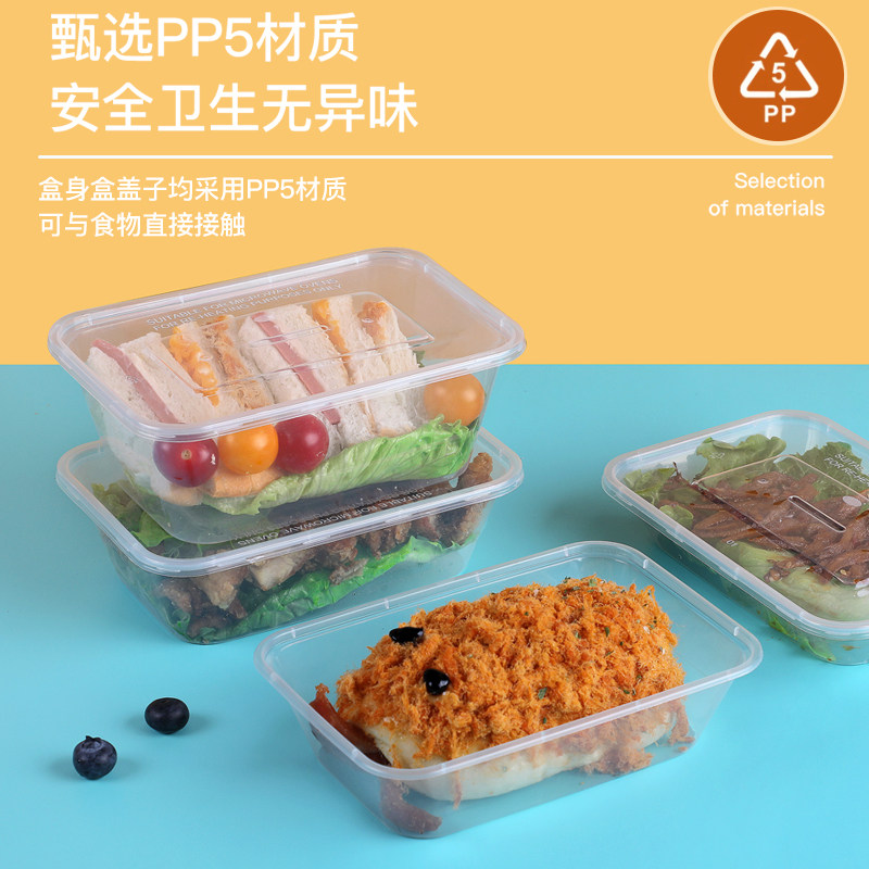750ml/650方形餐盒一次性打包盒商用长方形快餐塑料带盖外卖饭盒