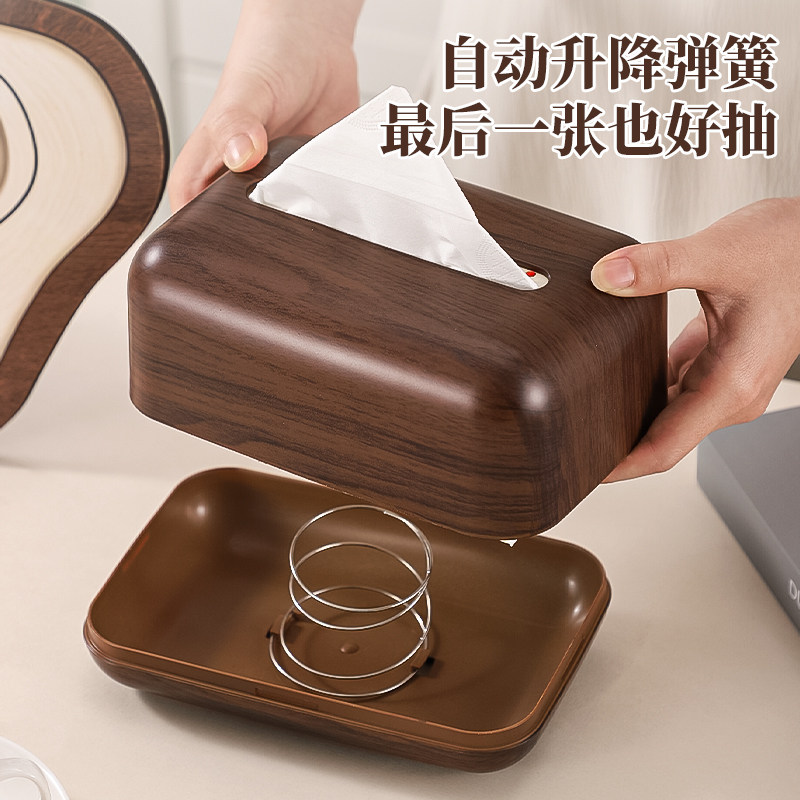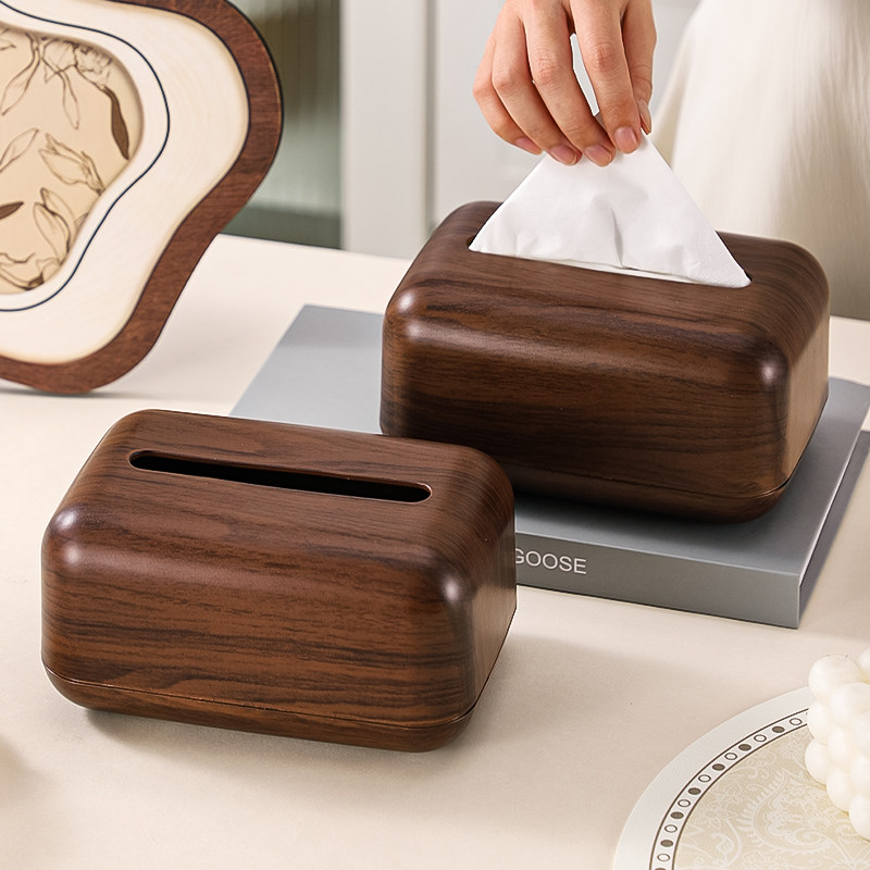木纹纸巾盒家用客厅轻奢高档中古风抽纸盒高级感复古茶几收纳盒