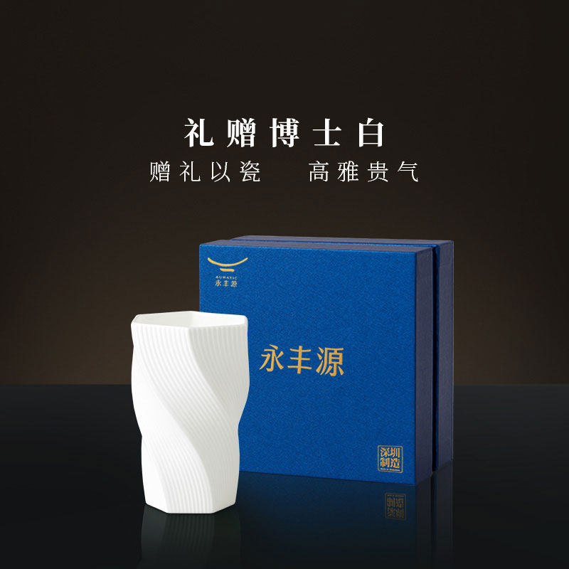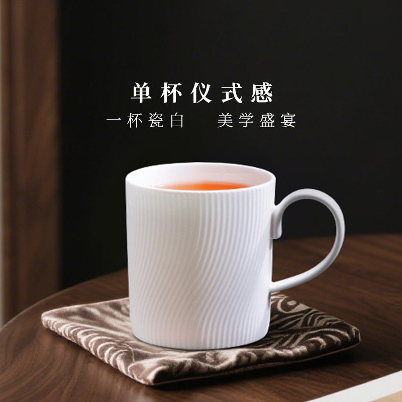 国瓷永丰源博士白马克杯陶瓷水杯茶杯大容量纯白浮雕杯子轻奢礼物