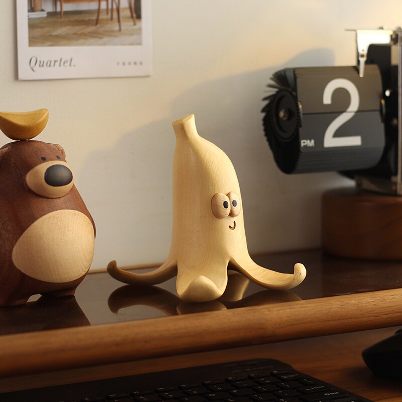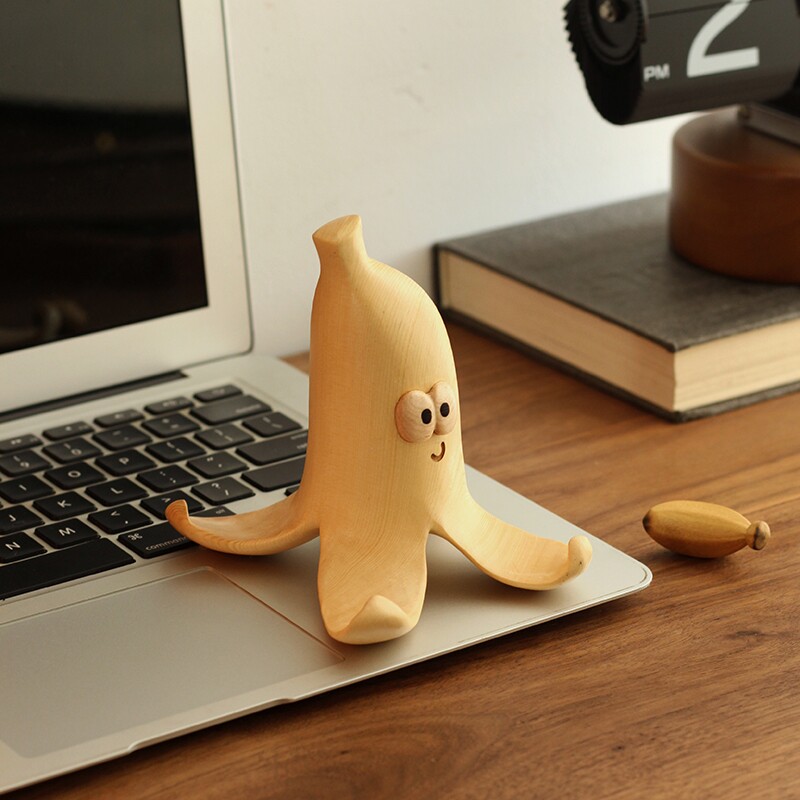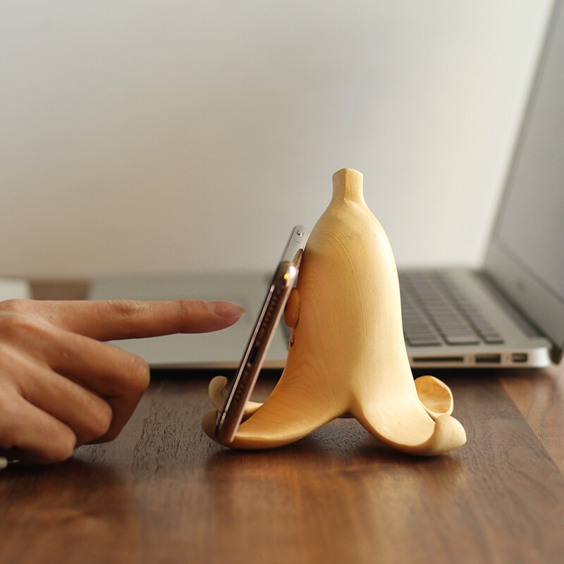三思工房实木香蕉手机支架平板支架可爱桌面摆件蕉个朋友创意礼物
