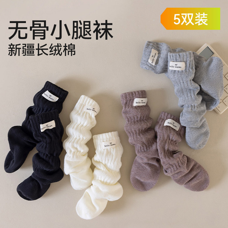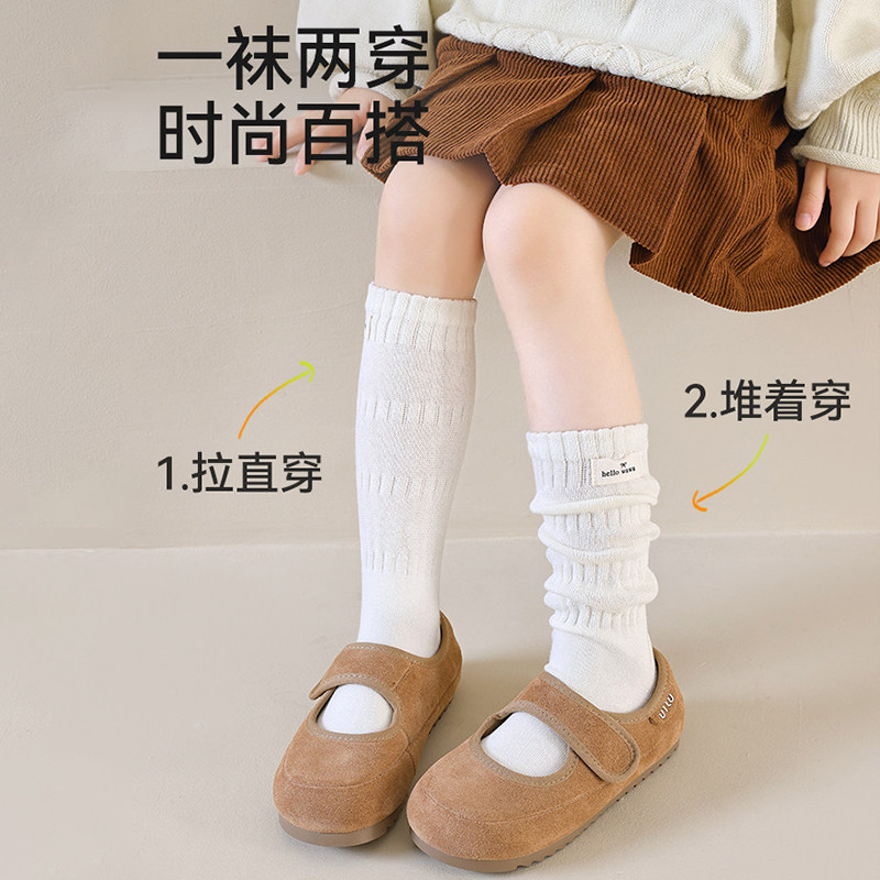 女童袜子儿童秋季新疆长绒棉小腿袜女孩中大童春秋高筒堆堆袜秋冬