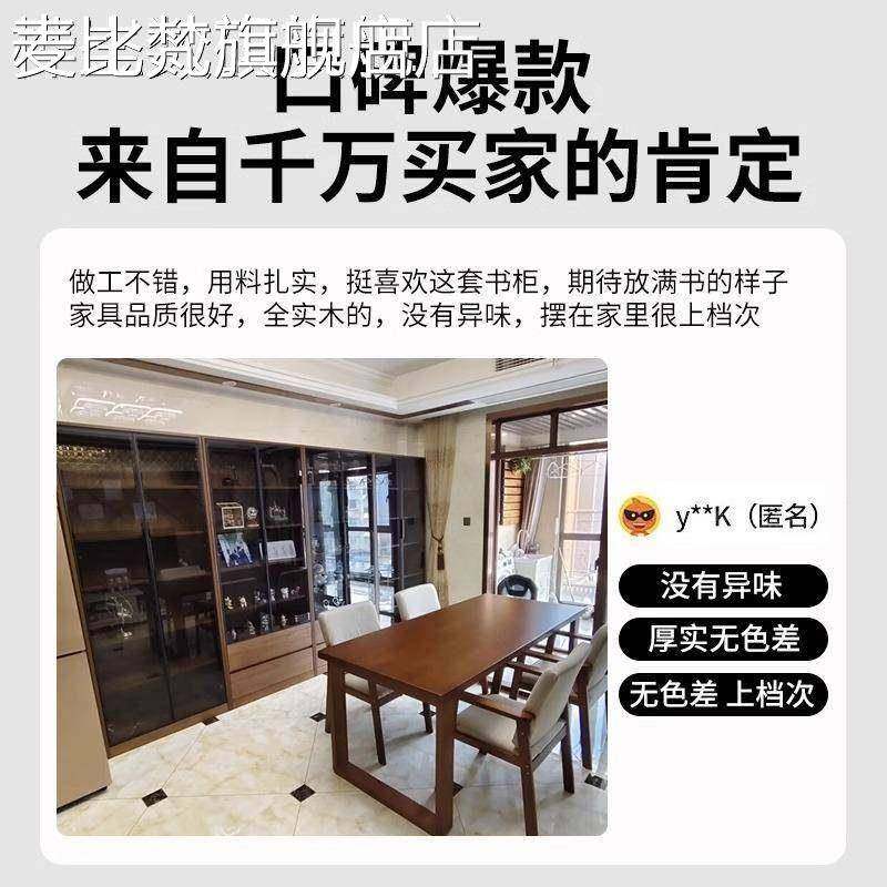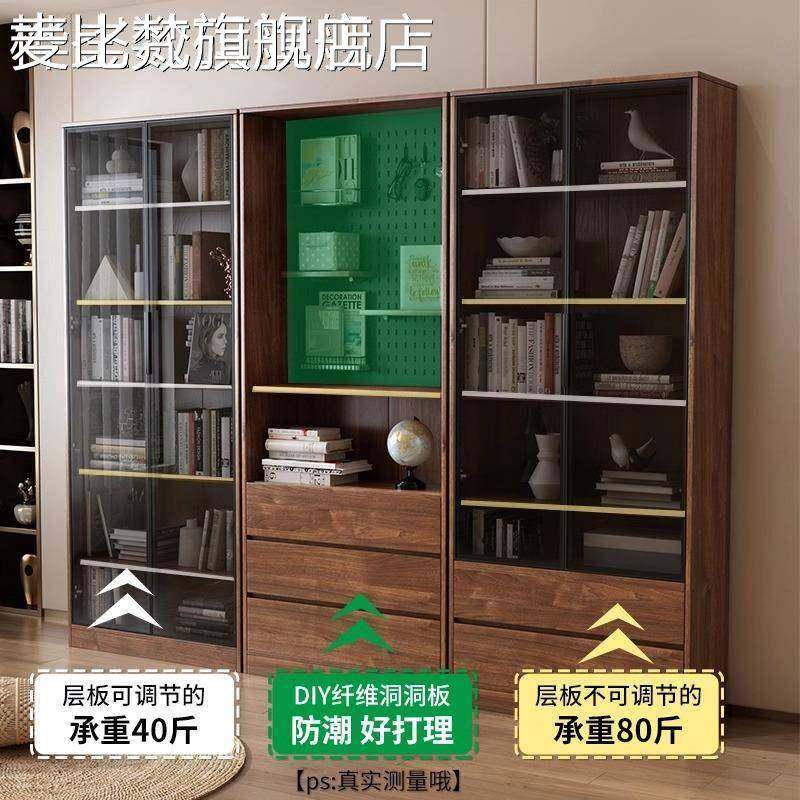 麦比梵实木书柜带玻璃门储物柜自由组合整墙柜子一体家用客厅靠墙展示柜床笠拉车