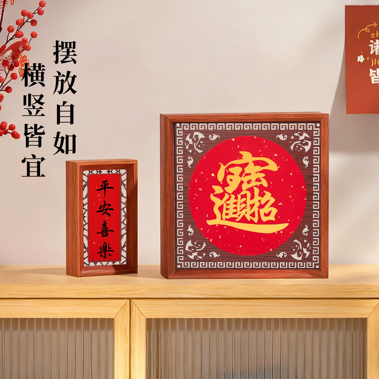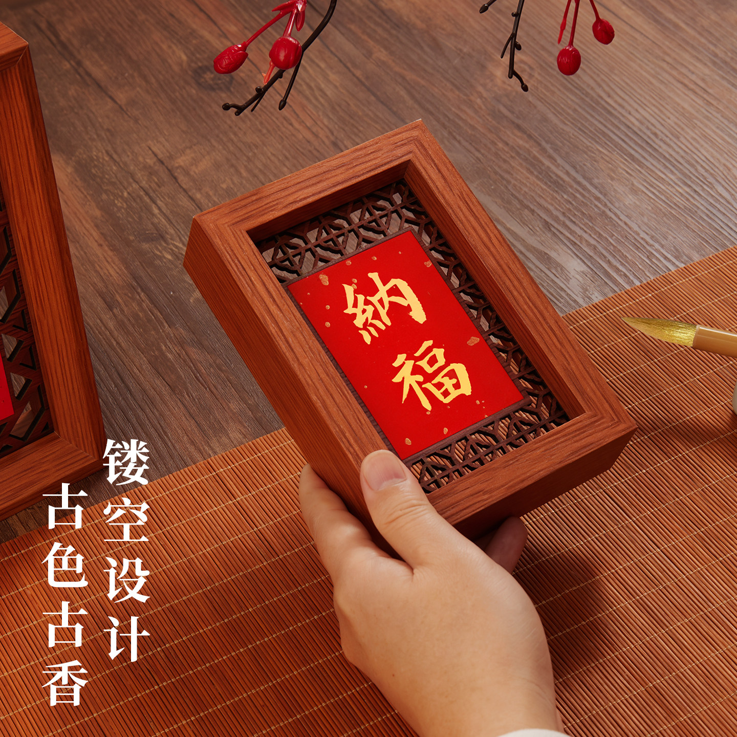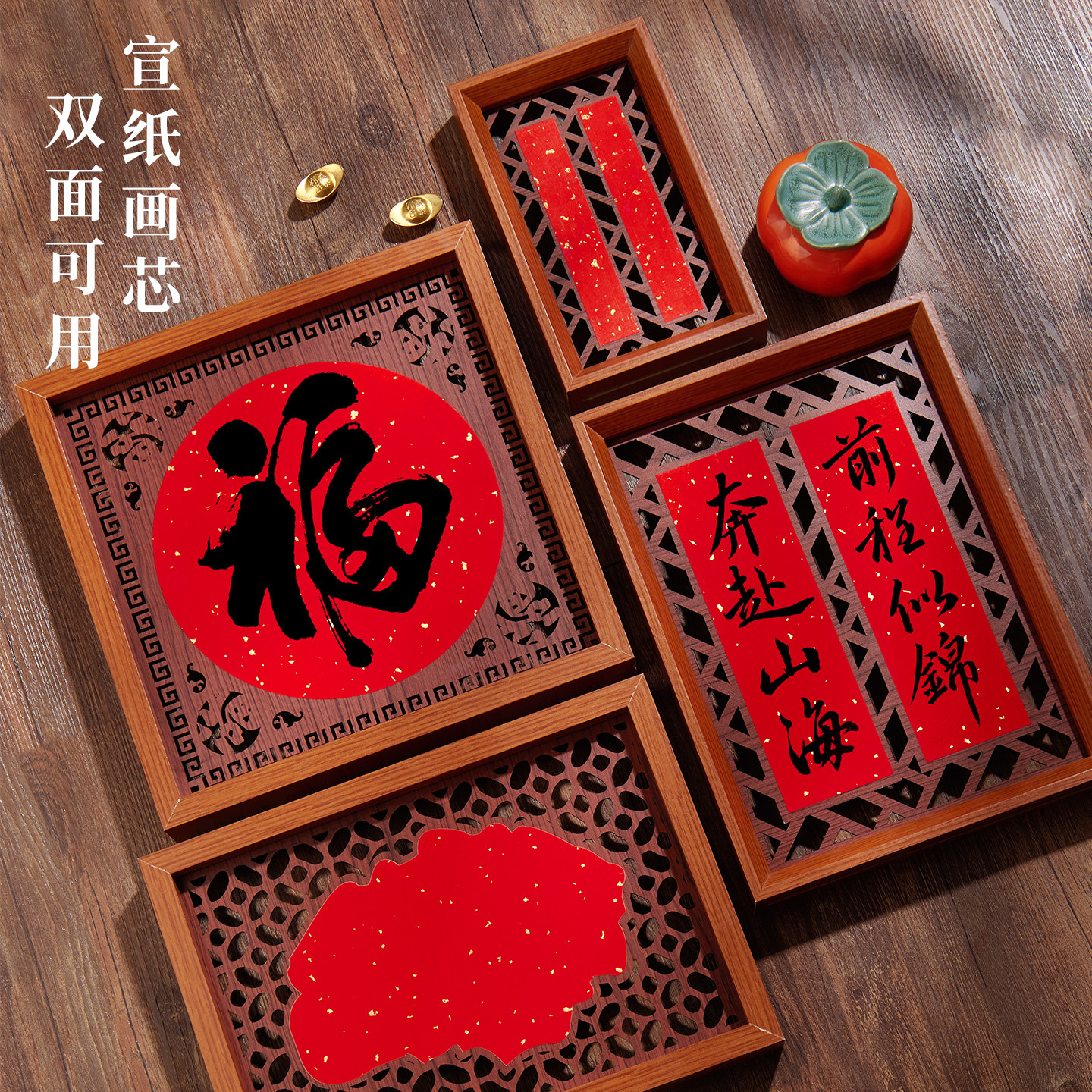 2026年万年红宣纸摆件创意木质镂空中国风摆件相框宣纸福卡写福字红纸手写斗方新年装饰春节新中式立体画框