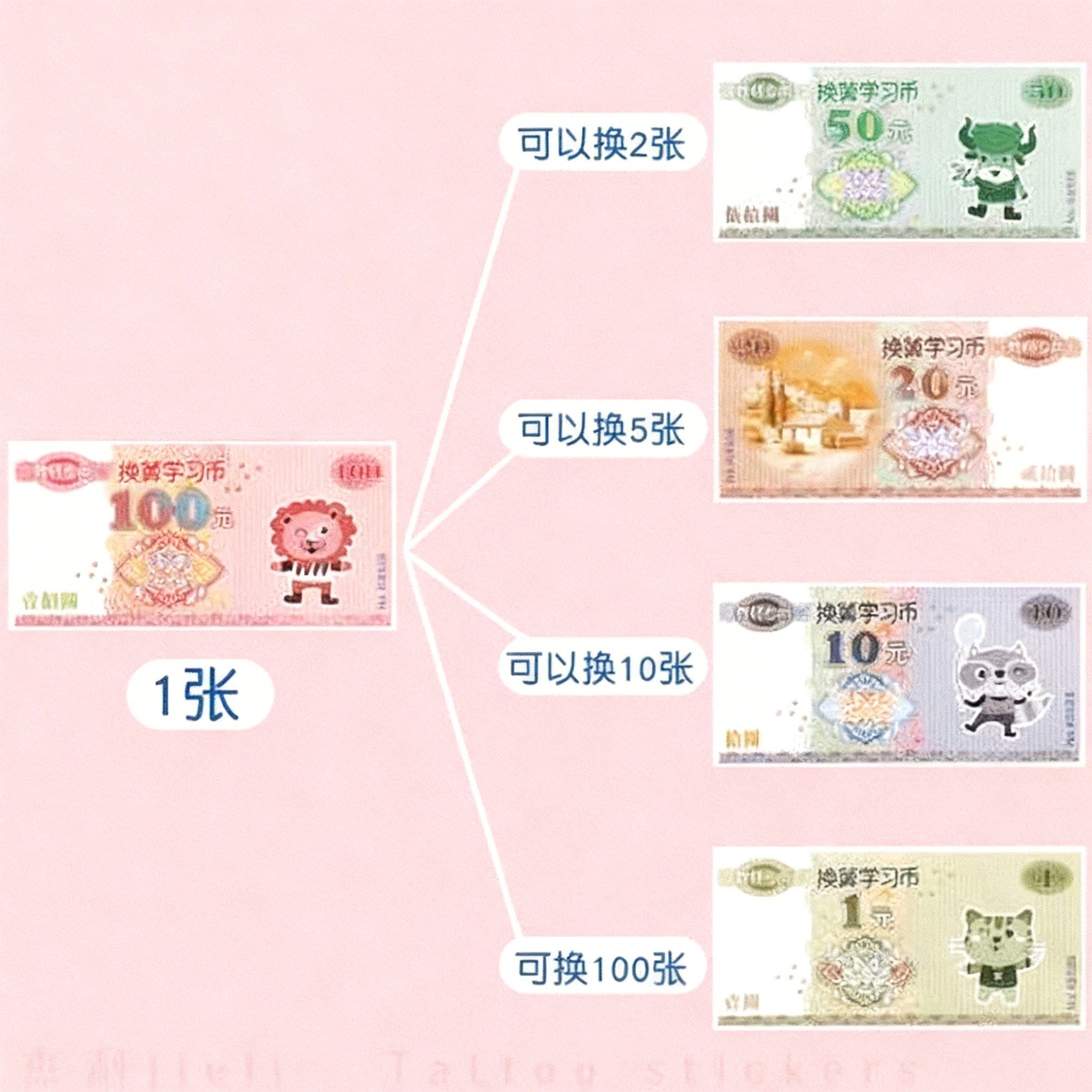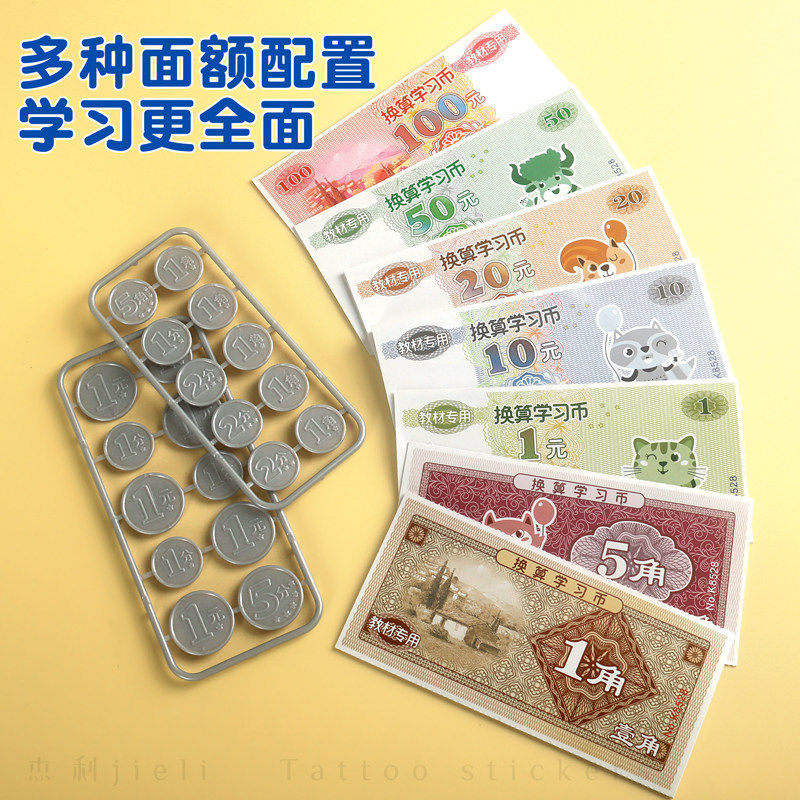 小学生认识钱币换算学习教具教学用纸币票样元角分儿童仿真学具