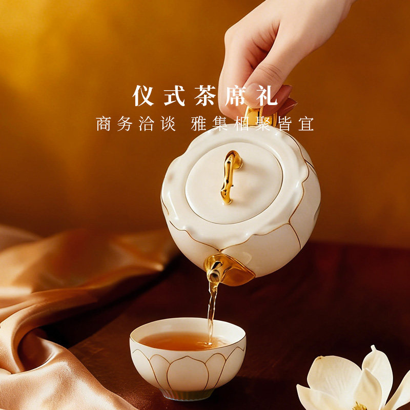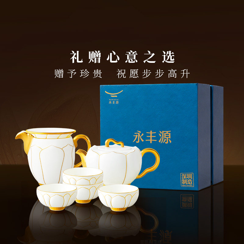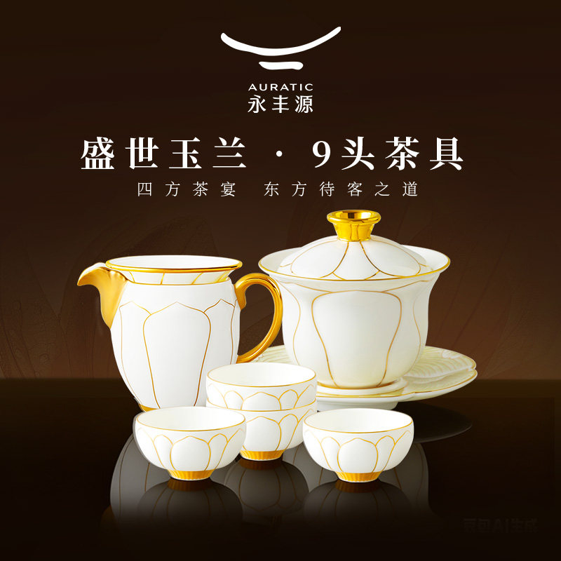 国瓷永丰源盛世玉兰8头/9头茶具陶瓷功夫茶杯套装