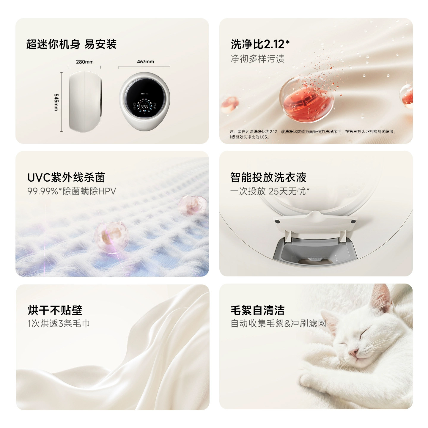 【小水滴PRO】小吉1.1kg壁挂式洗衣机内衣内裤小型超薄洗烘一体机