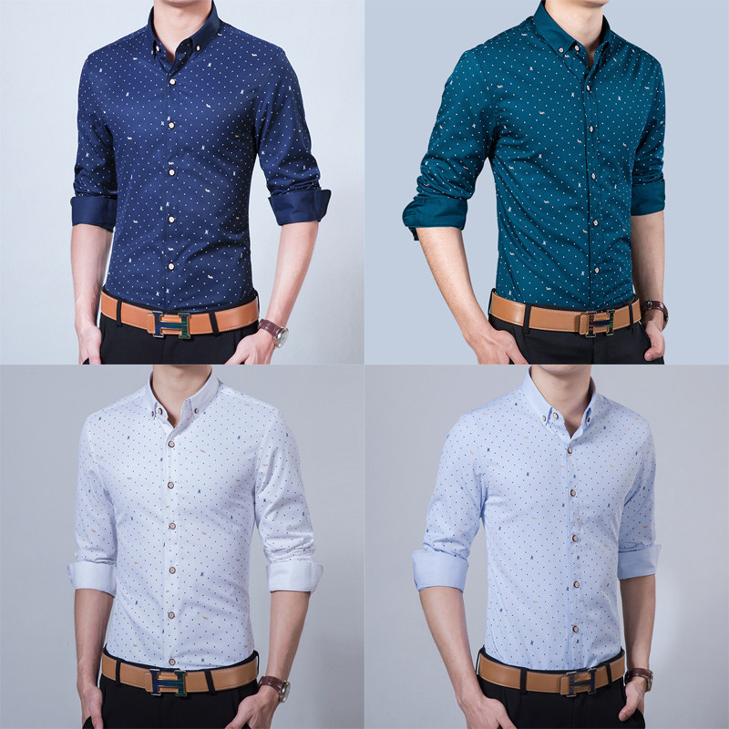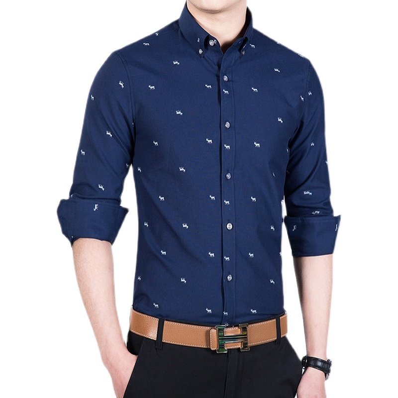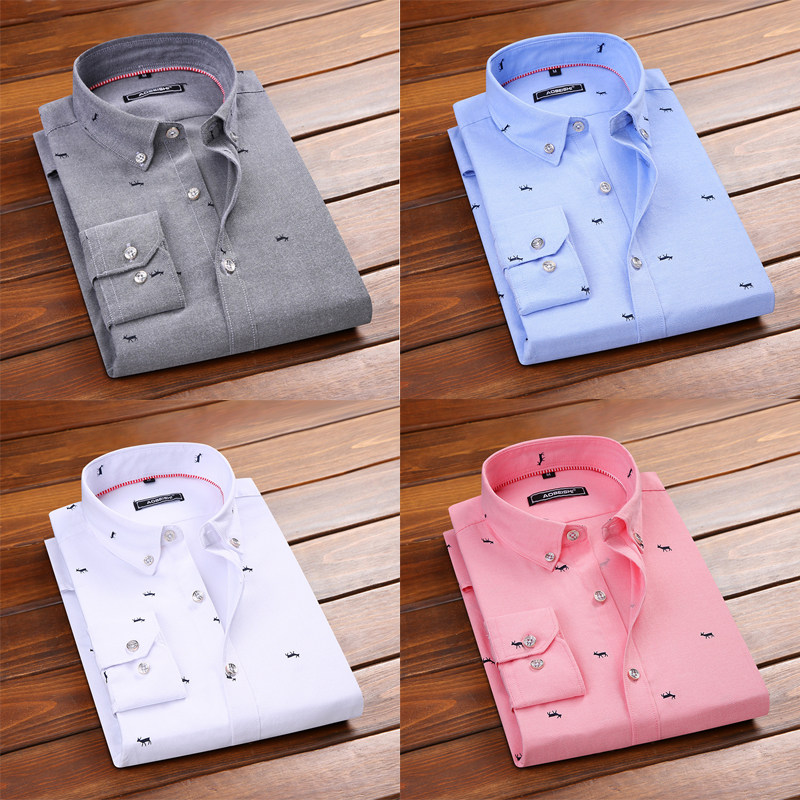 奥贝狮衬衫男夏秋高级感商务休闲免烫中年印花长短袖衬衣加绒保暖