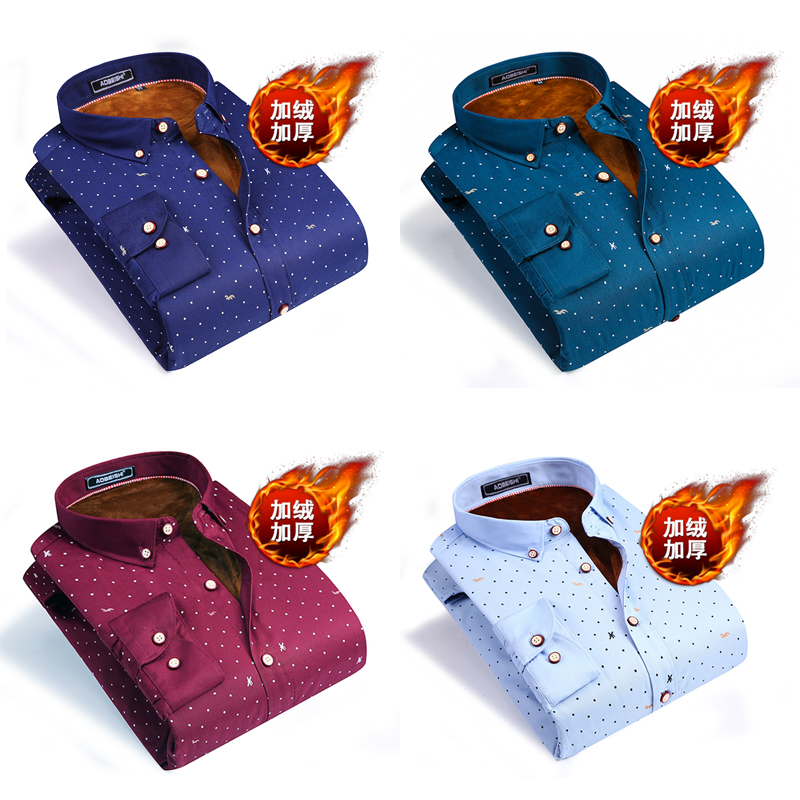 罗蒙加绒加厚衬衫男士冬季商务休闲保暖免烫抗皱衬衣上衣打底衫