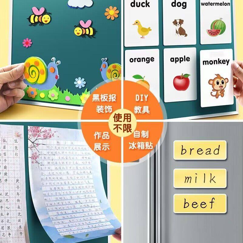 磁力贴片背胶黑板磁贴磁性教学教具墙秀公开课板作品展示磁铁教师长条3m软磁片粘冰箱贴diy吸铁石免裁剪