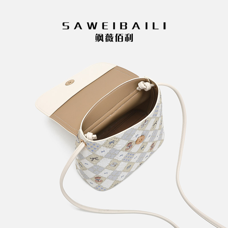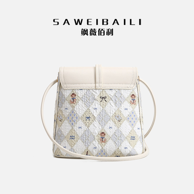 包包女包2025新款可爱卡通褶皱印花水桶包迷你单肩斜挎包女手机包