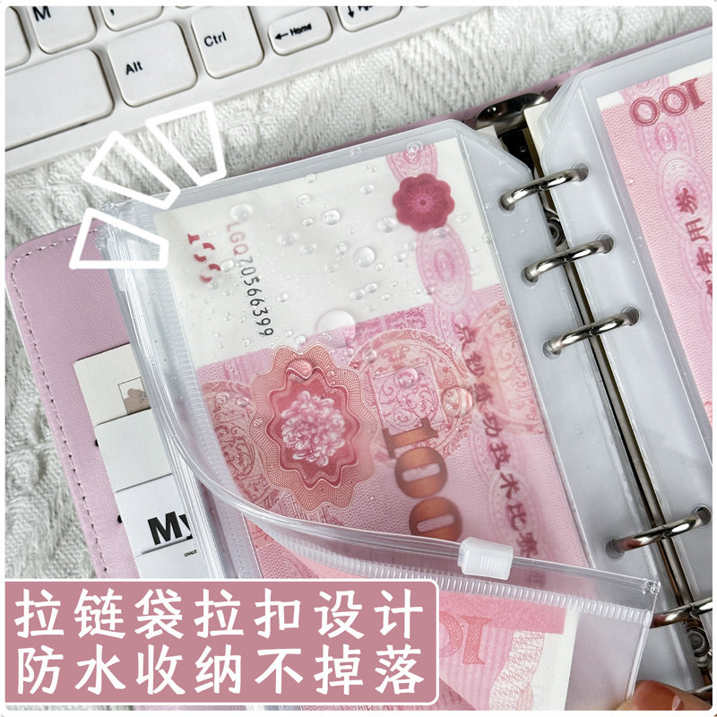 A6密码存钱本只放钱现金攒钱本票据收纳册记账本存钱袋零钱活页拉链袋家庭主妇成人明细本储存本儿童学生理财