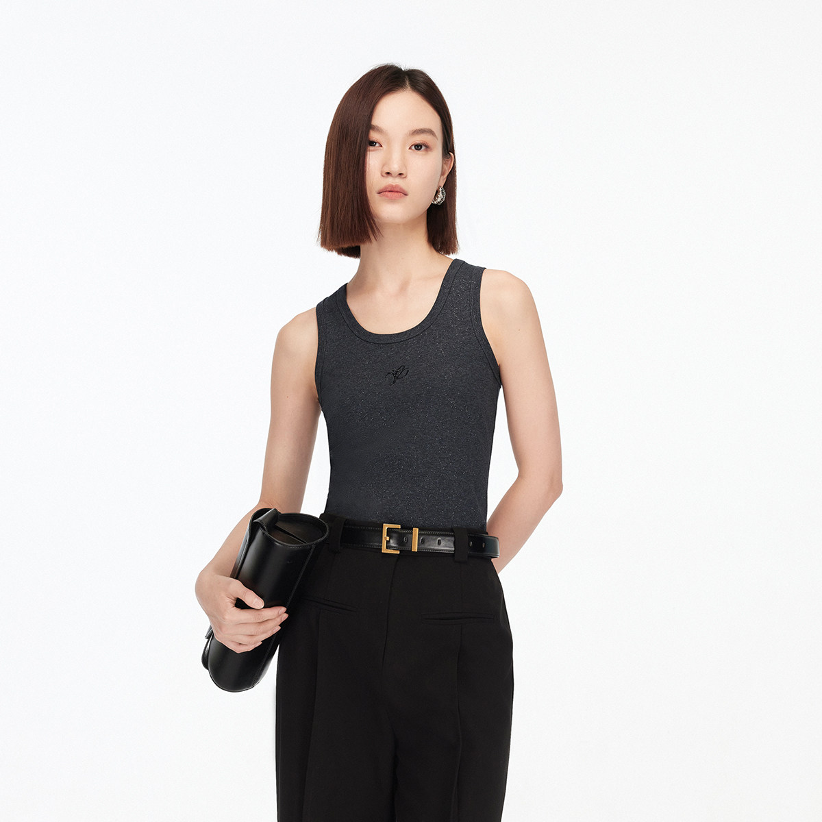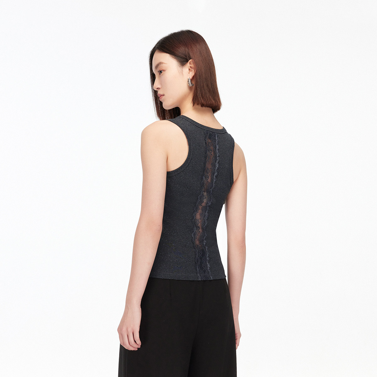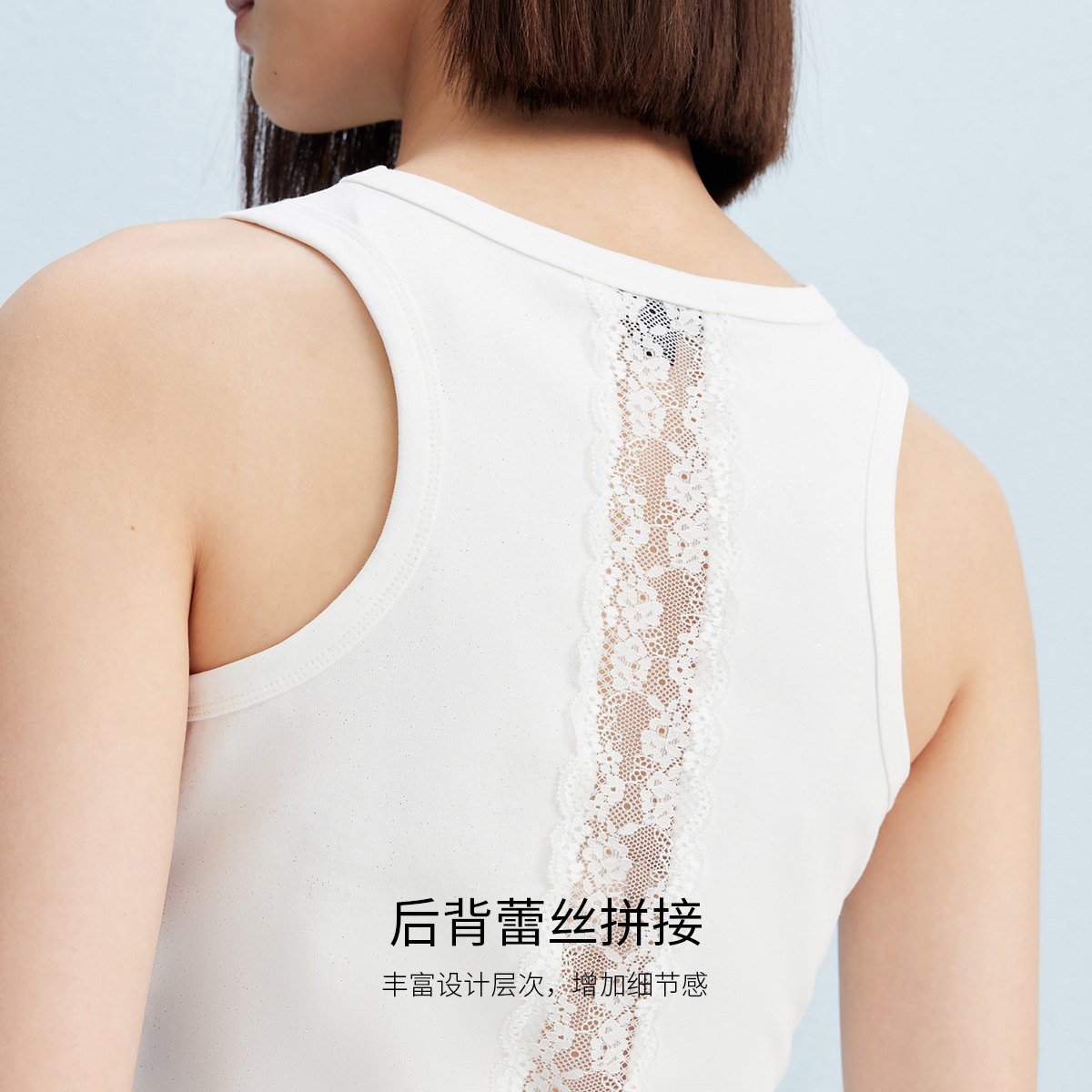 Vero ModaT恤2025秋季新款含棉蕾丝元素T恤烫钻无袖上衣325303002