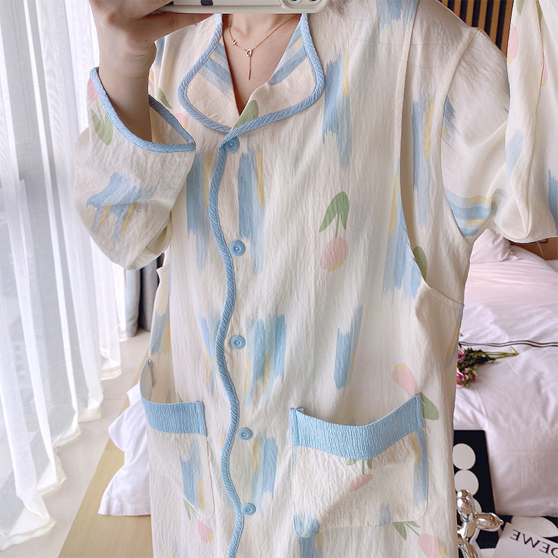 婧麒带胸垫哺乳睡裙夏季前开口生产医院待产裙孕妇裙喂奶月子服女
