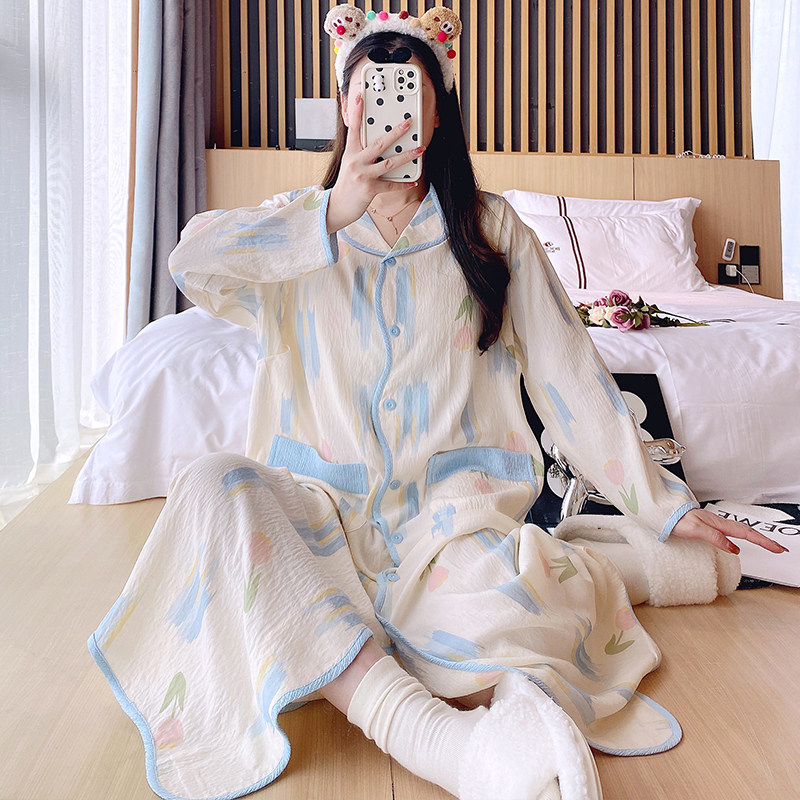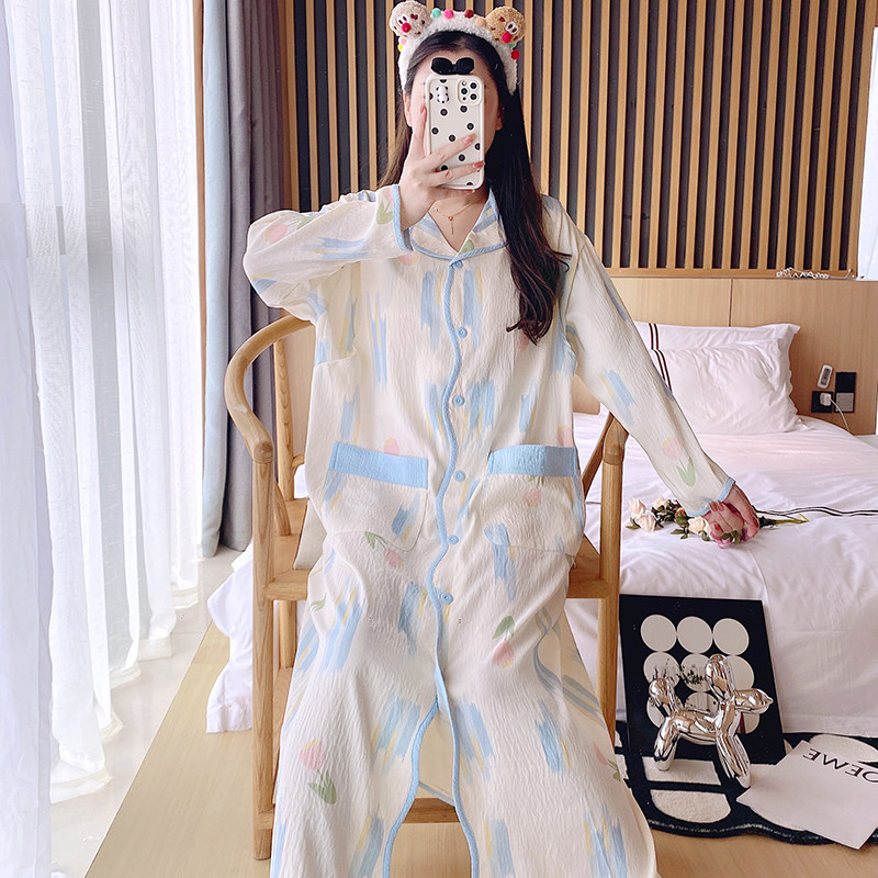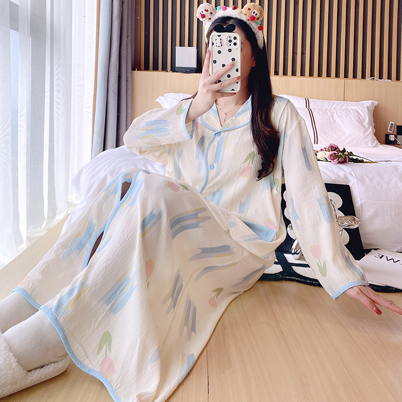 春秋纯棉带胸垫月子服医院待产裙产妇孕妇睡裙喂奶哺乳衣产前产后