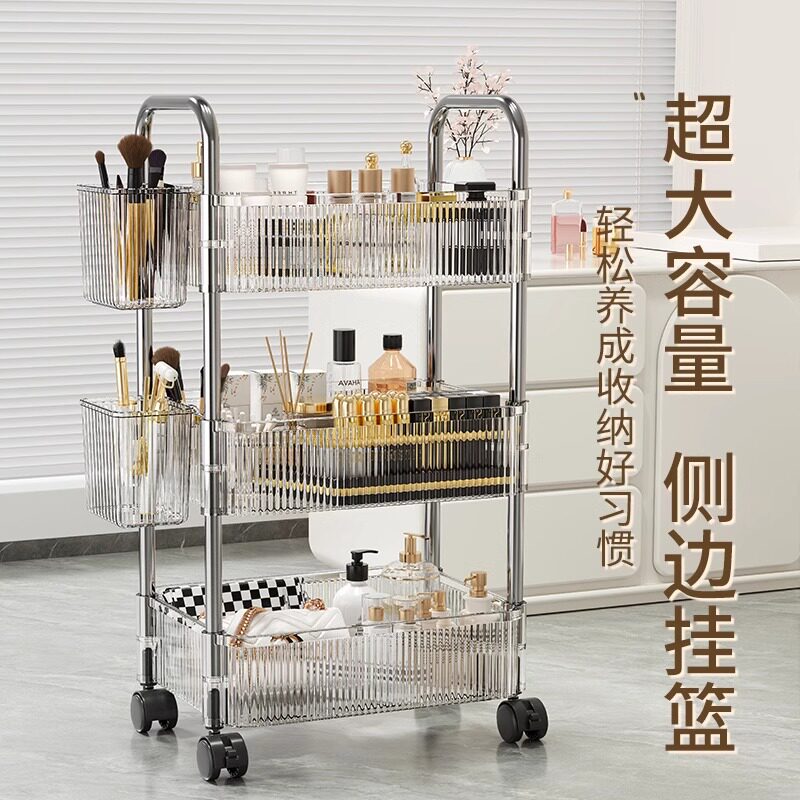 亚克力零食置物架小推车落地移动浴室卫生间收纳盒多层化妆品书本