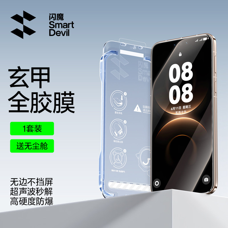 闪魔小魔盒适用iPhone16ProMax钢化膜16e苹果15pro无黑边13 promax无尘仓屏幕14plus全屏覆盖12手机保护贴膜