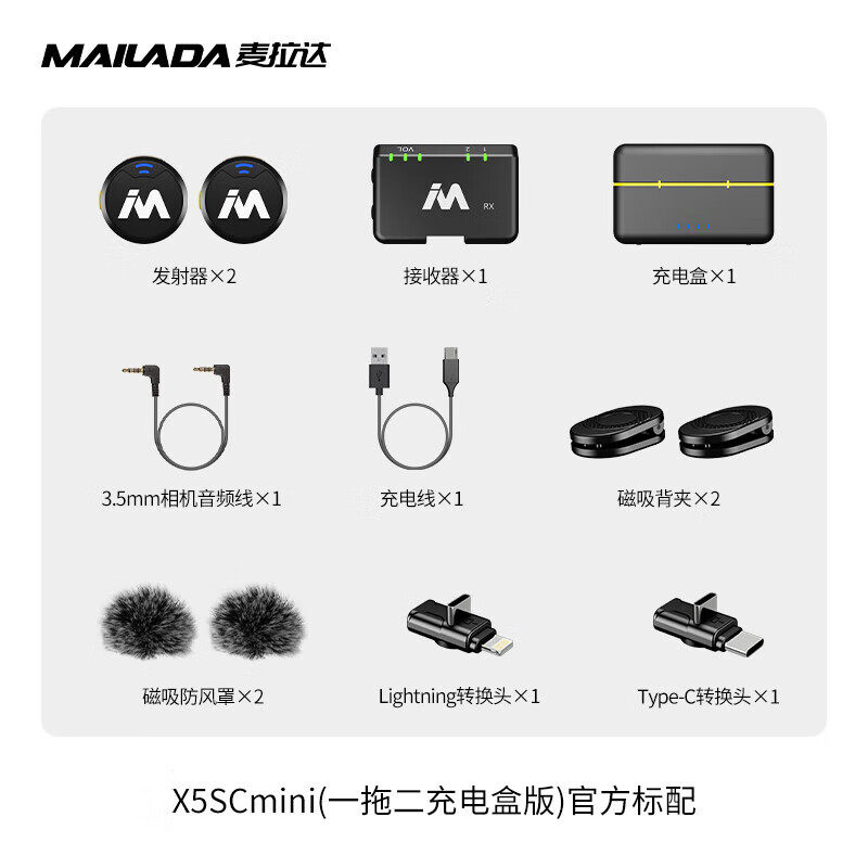 麦拉达麦克风X5mini领夹麦单反相机手机直播vlog便携式无线收音麦