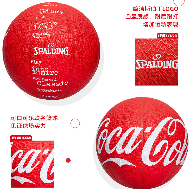 斯伯丁篮球可口可乐联名款专业比赛训练男女学生标准七号室外红罐