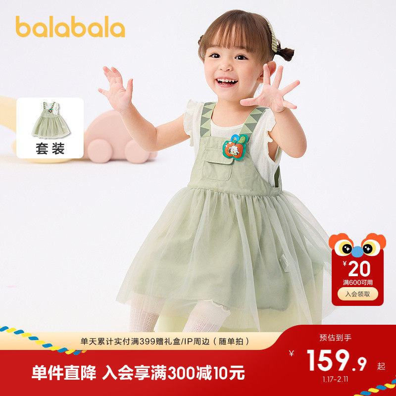 巴拉巴拉童装女童夏装2025新款婴儿短袖背带裙套装甜美潮时尚百搭