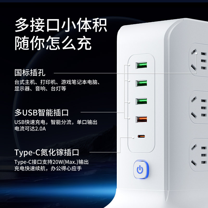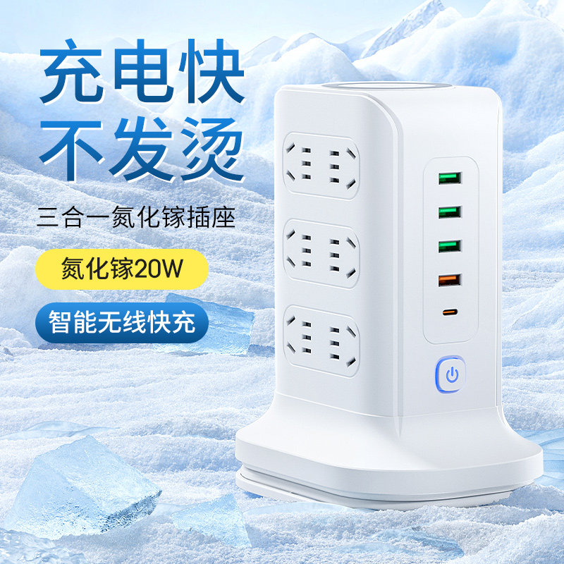 度三合一插座usb快充20w无线排插桌面智能保护充电大功率氮化便携