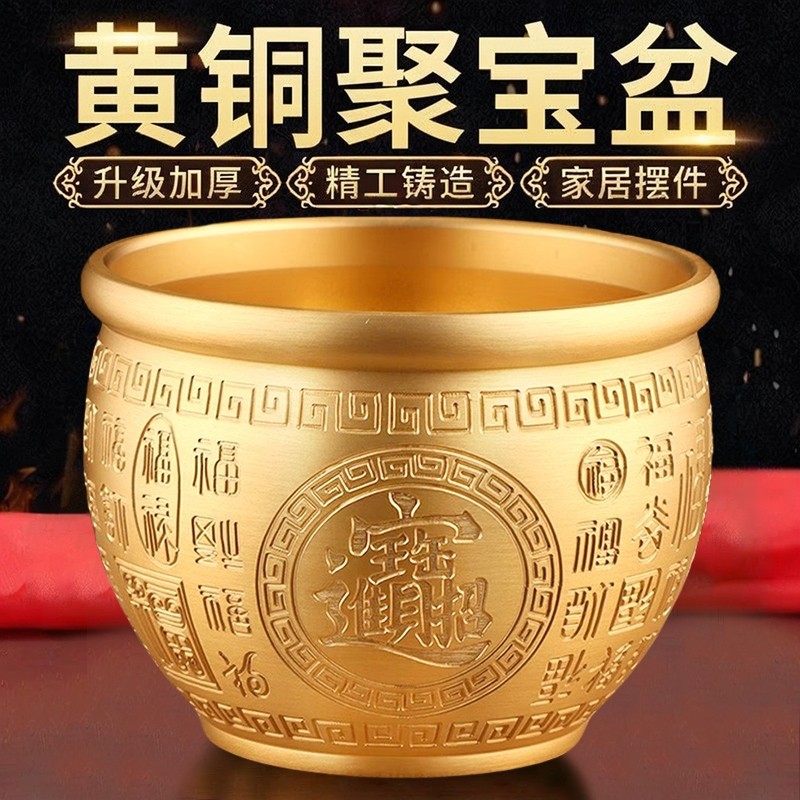 百福铜缸纯黄铜米缸摆件家居客厅装饰品招聚财特大号存钱罐聚宝盆