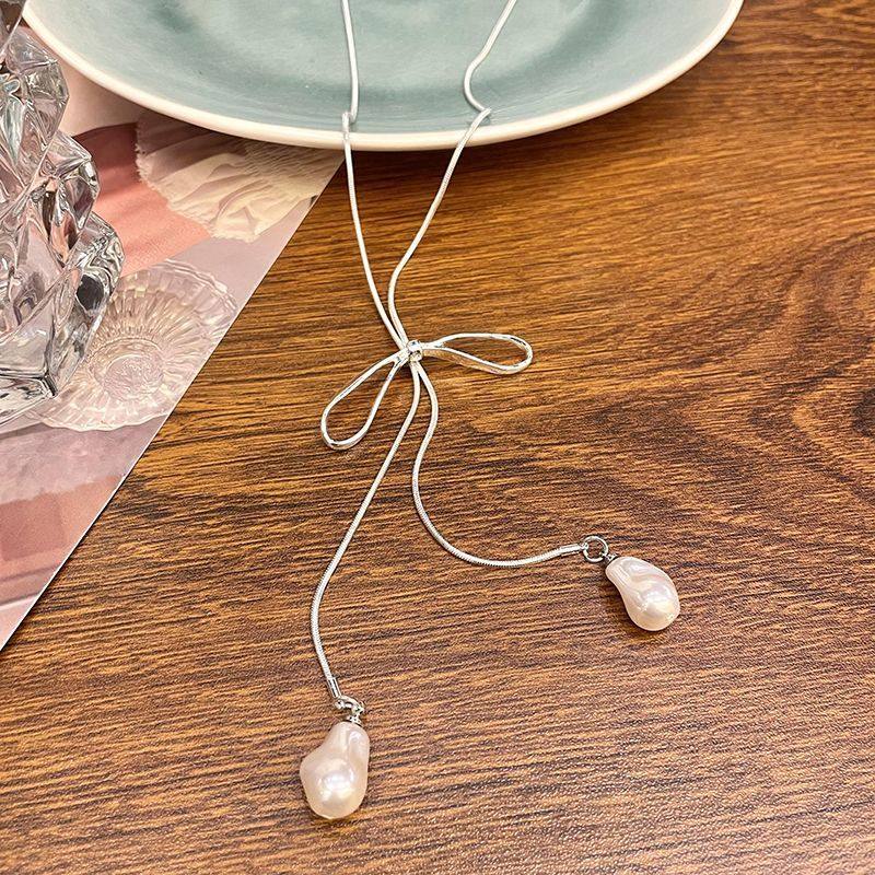吊坠项链水滴蝴蝶结韩系长款女款装饰银色秋冬夏天百搭毛衣搭配