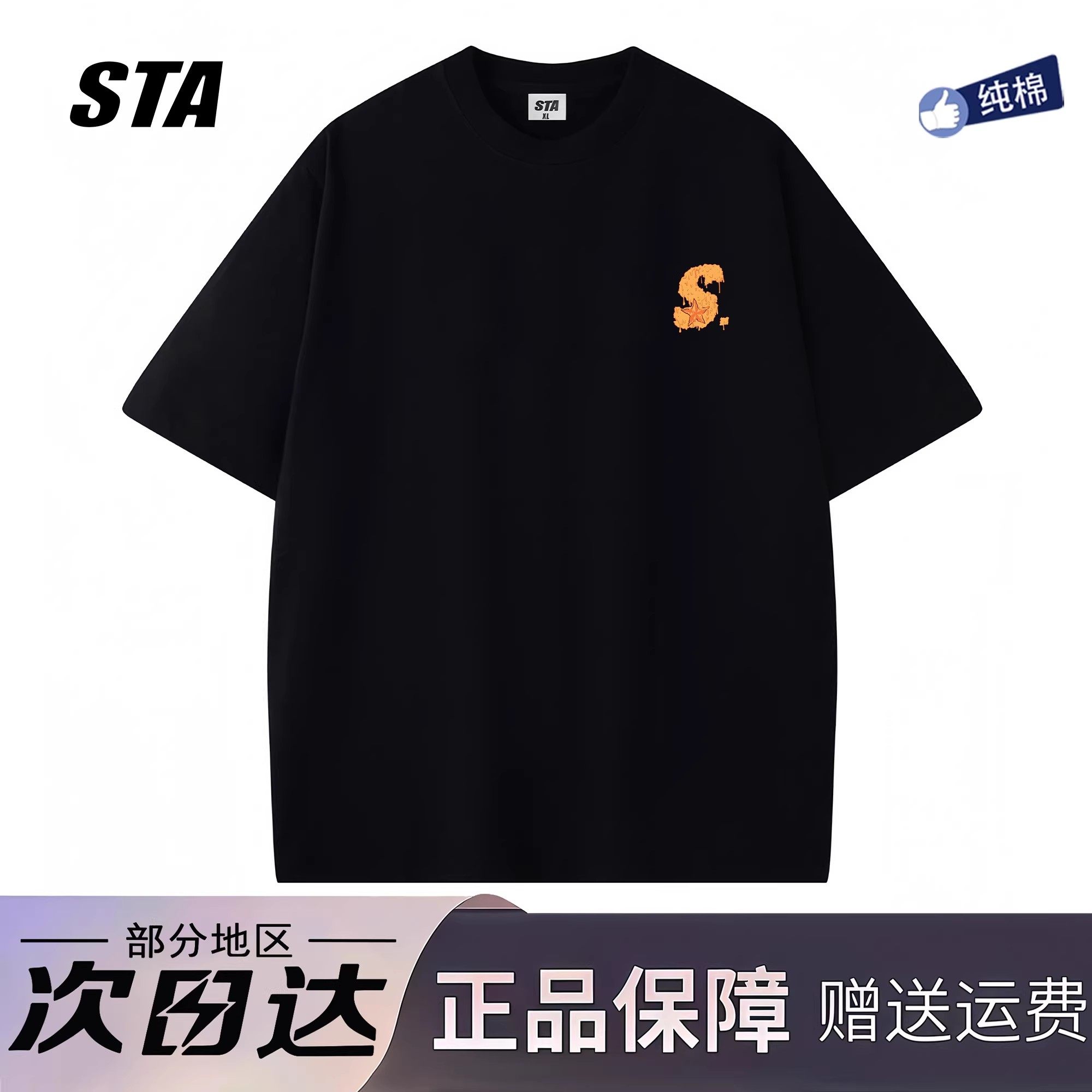 STA旗舰店美式融化星标短袖男女夏季潮牌街头重磅纯棉宽松情侣T恤