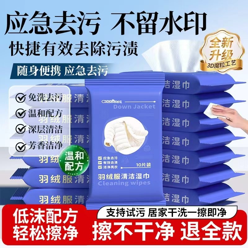 羽绒服免洗清洁湿巾便捷干洗专用强力去污衣物轻松去渍湿纸巾家用