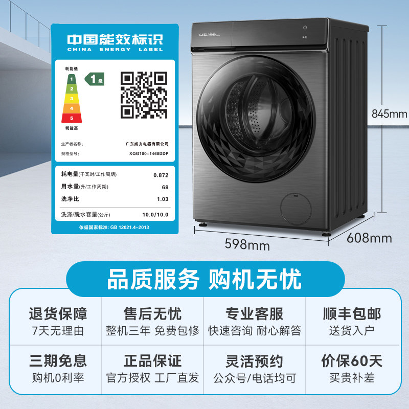 威力滚筒洗衣机+热泵干衣机10KG洗烘套装低温护衣紫外线除螨除潮