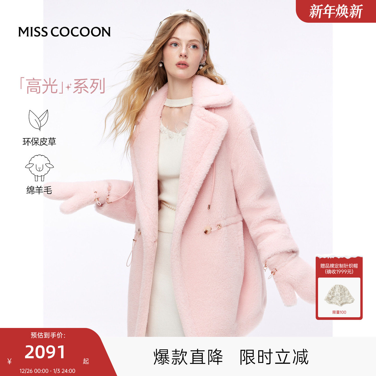 MISSCOCOON可可尼粉色毛毛外套女2025冬季新款收腰新年皮草大衣