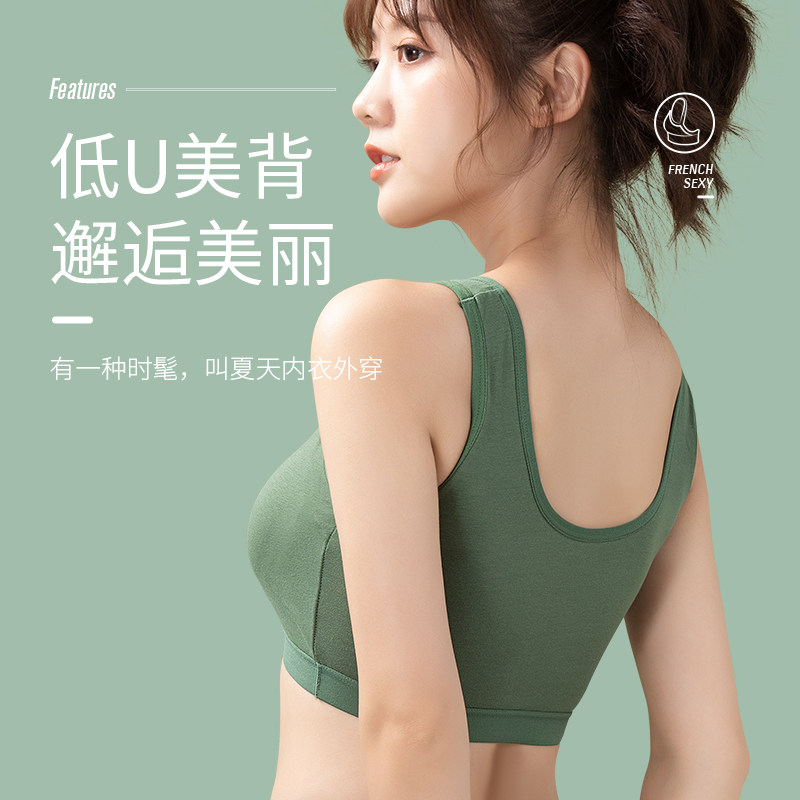 纯棉内衣少女学生无钢圈聚拢防下垂运动文胸罩美背固定显大内搭