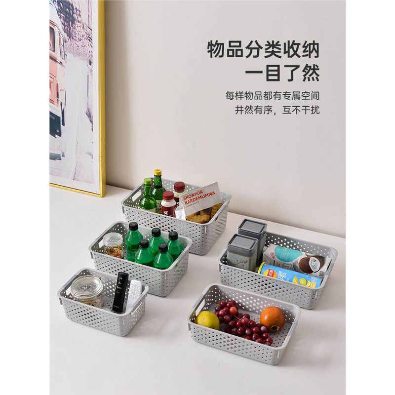 塑料收纳筐桌面零食文件收纳盒杂物收纳框置物篮窄口长方形收纳篮