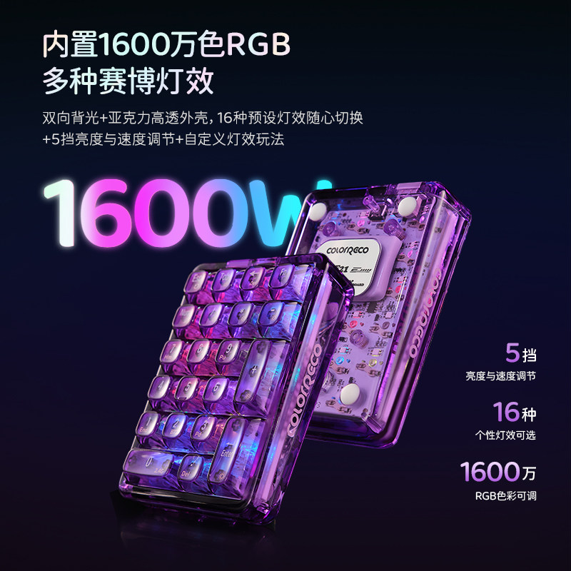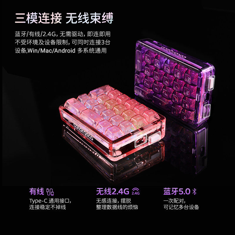 ColorReco F21透明三模机械数字小键盘有线外接蓝牙无线财务办公