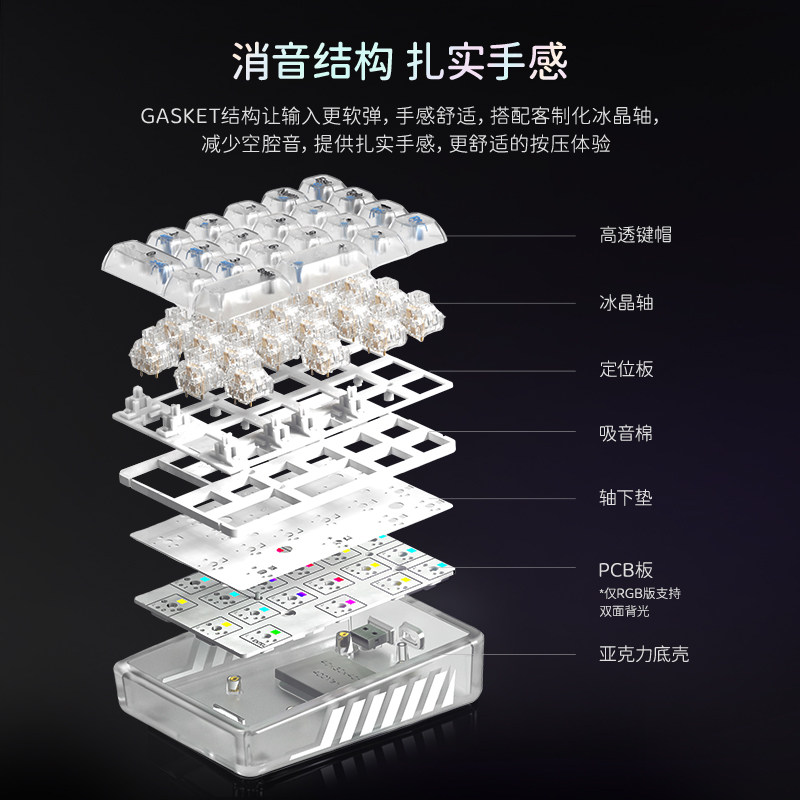 佐赫ZH980黑透蜘蛛网机械键盘电竞游戏有线蓝牙客制成品静音键盘
