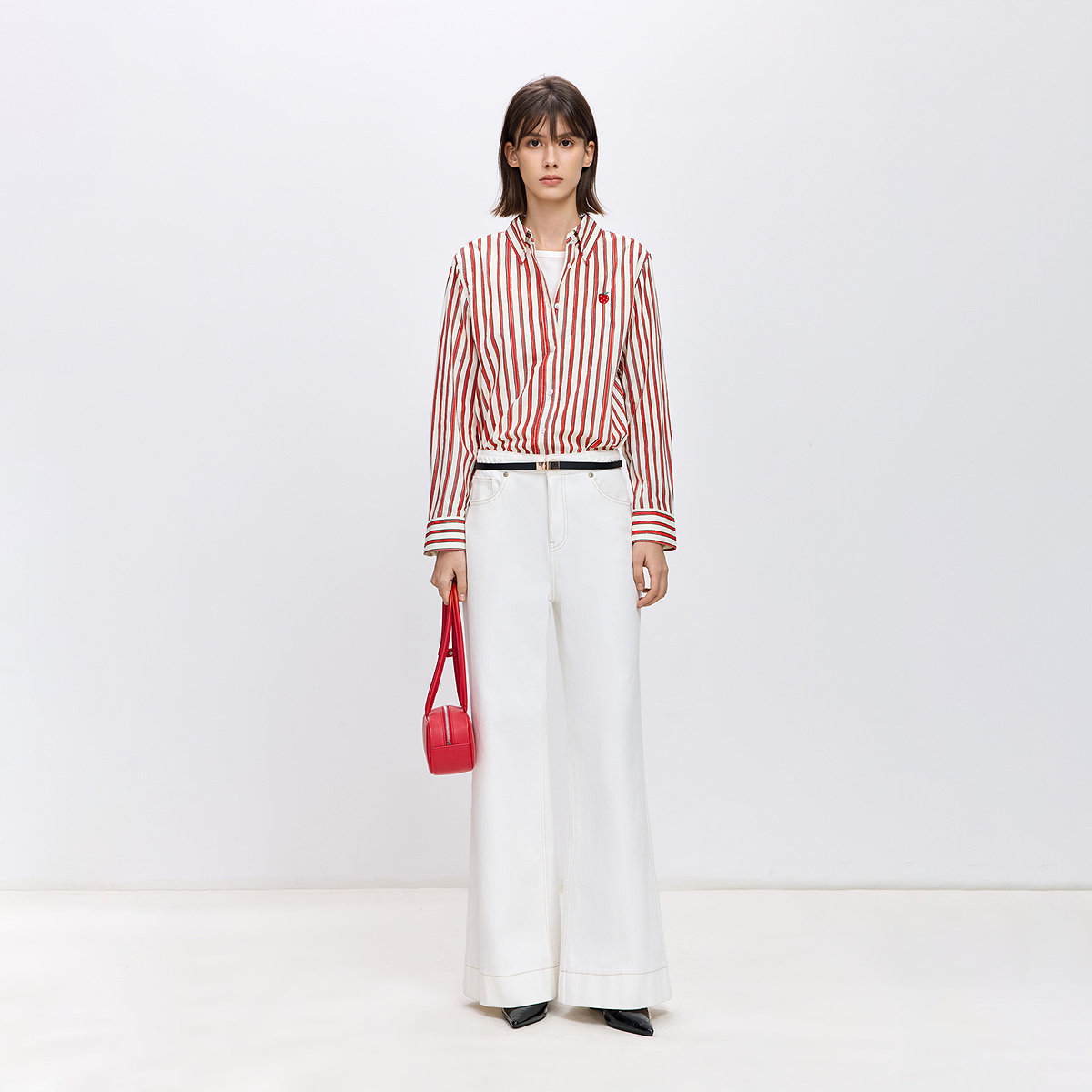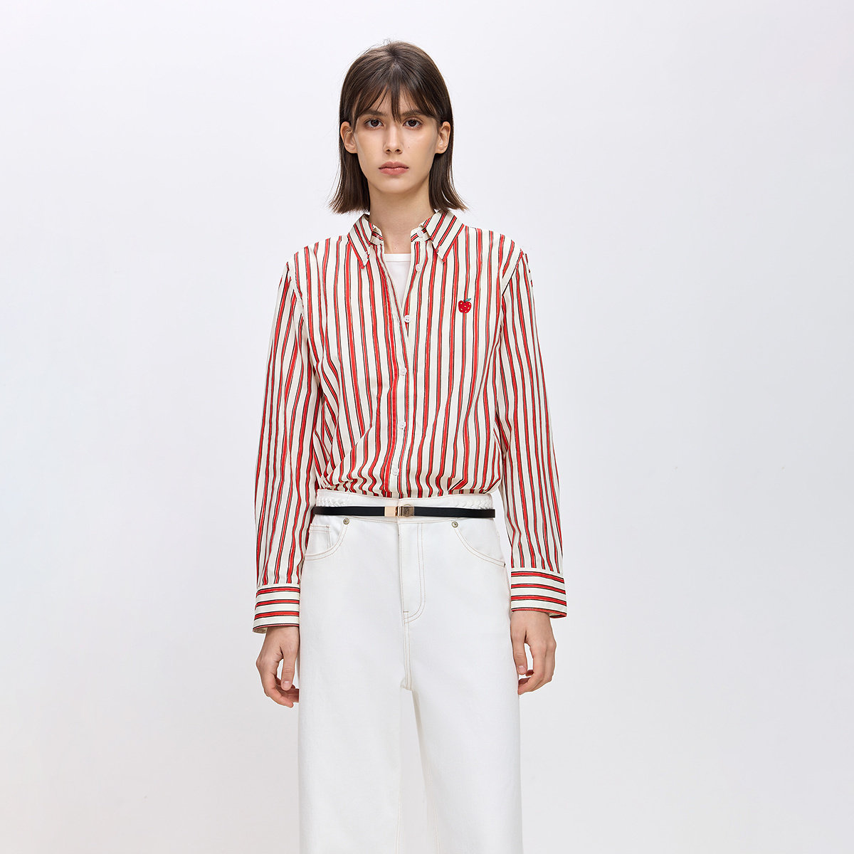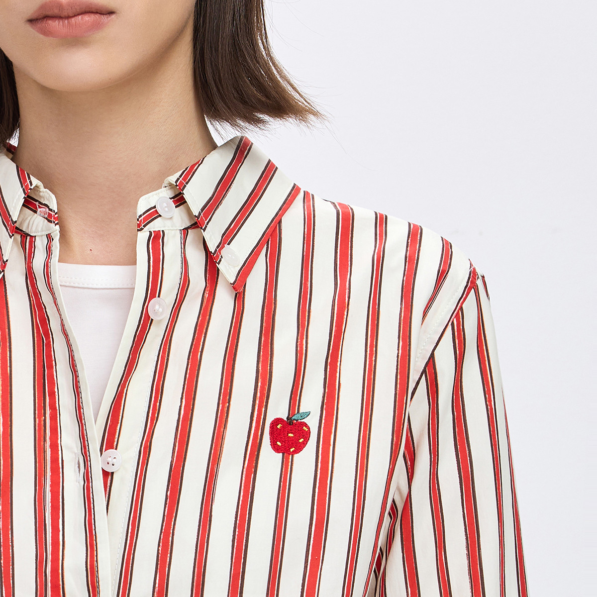 LILY2026春新款女装全棉手绘条纹圣诞新年平安果苹果刺绣衬衫外套