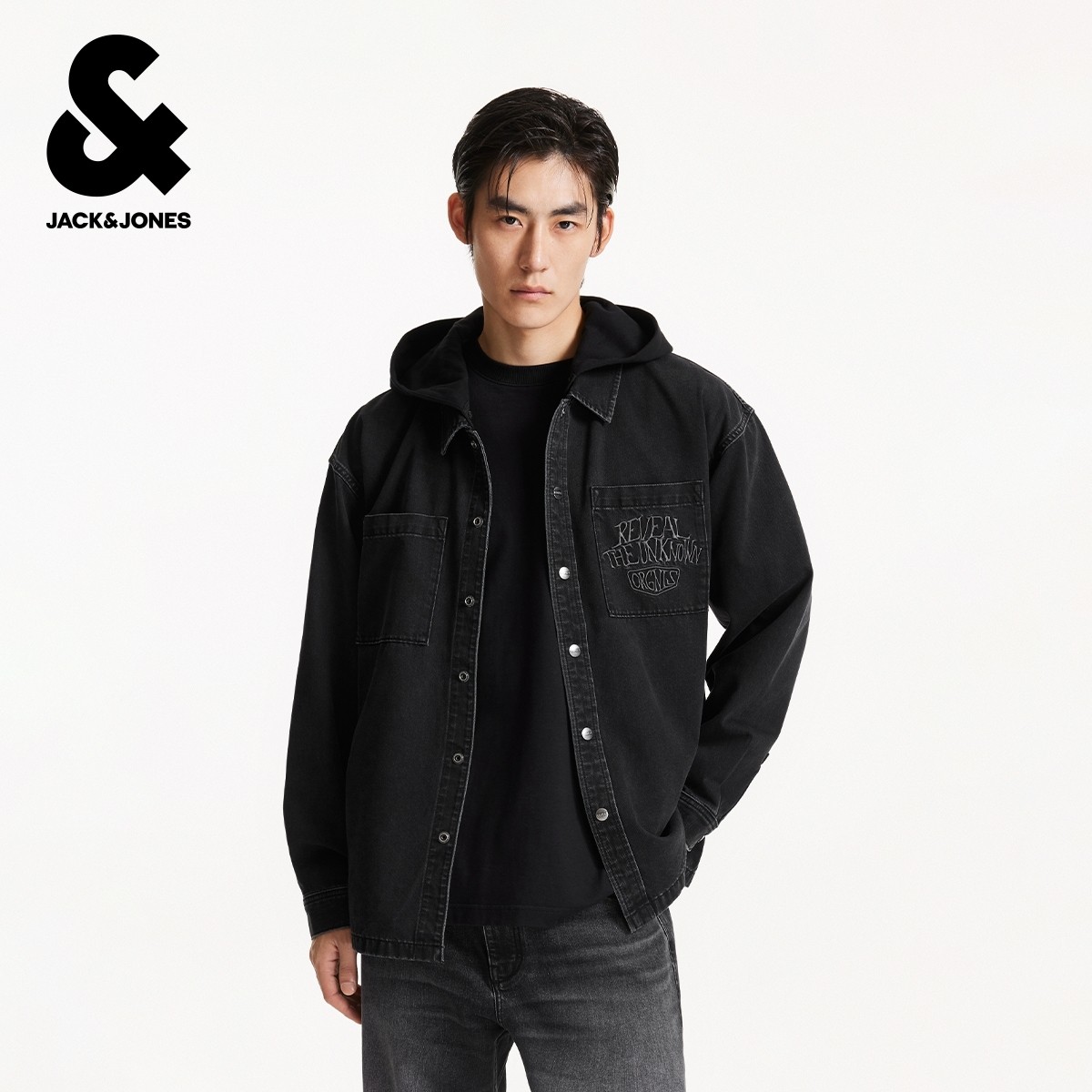 杰克琼斯男装秋季新款时尚潮流休闲日常青春宽松连帽牛仔衬衫外套