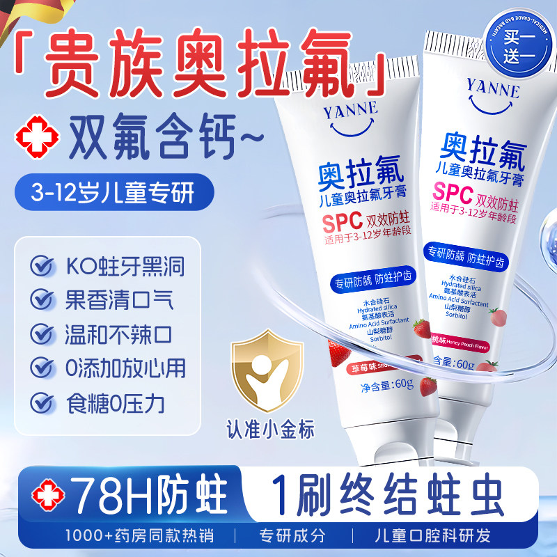 儿童牙膏3到6到12岁含氟换牙期预防蛀牙龋奥拉氟宝宝专用正品固齿