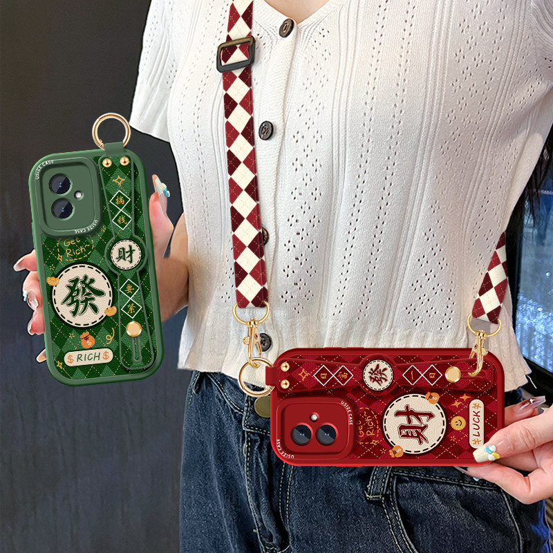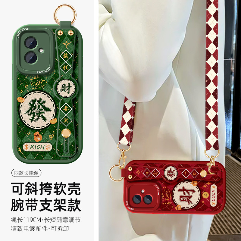 菱格麻将适用荣耀100防摔90Pro发财手机壳X50i+女新款Honor斜挎80SE挂绳70Por腕带支架60可背跨50全包保护套