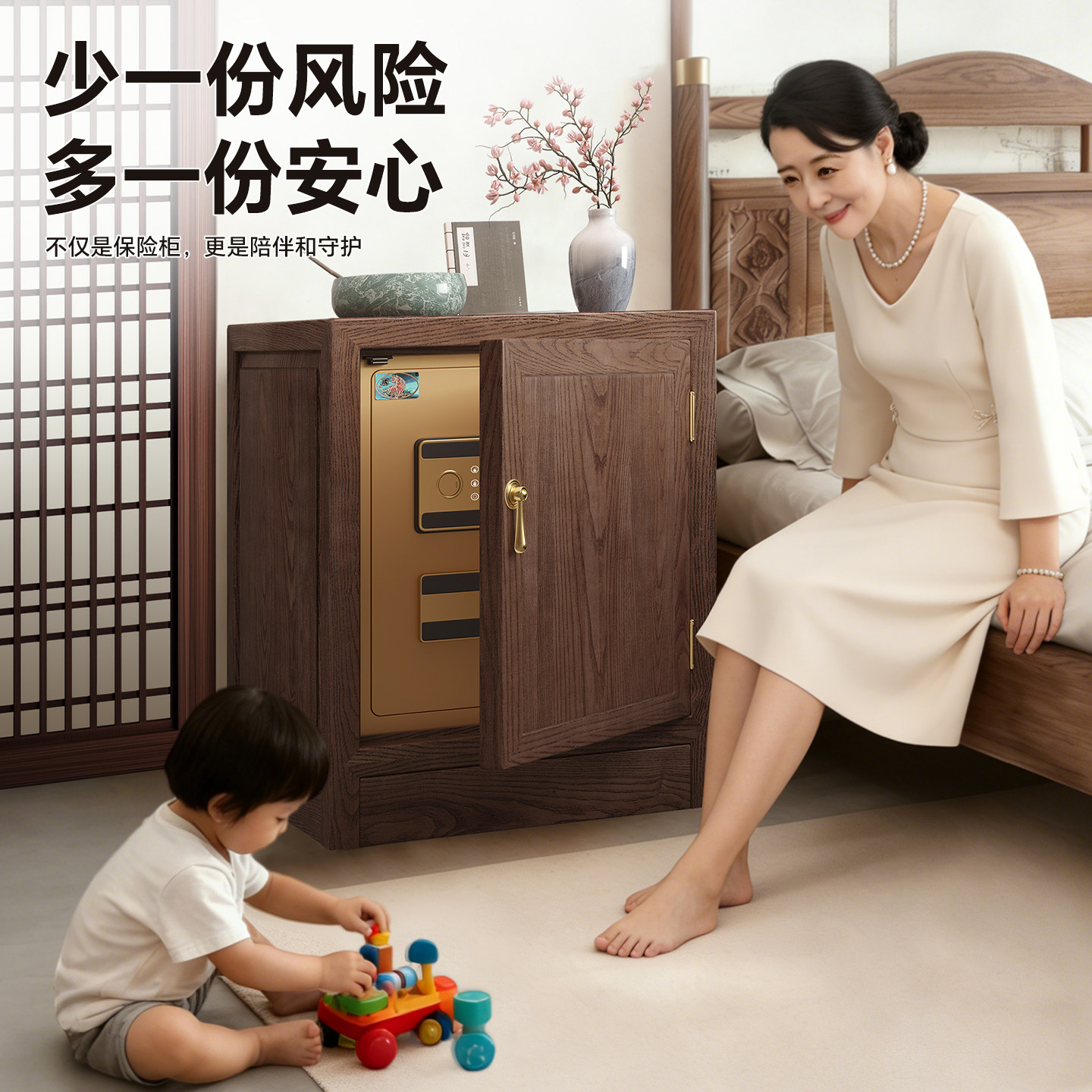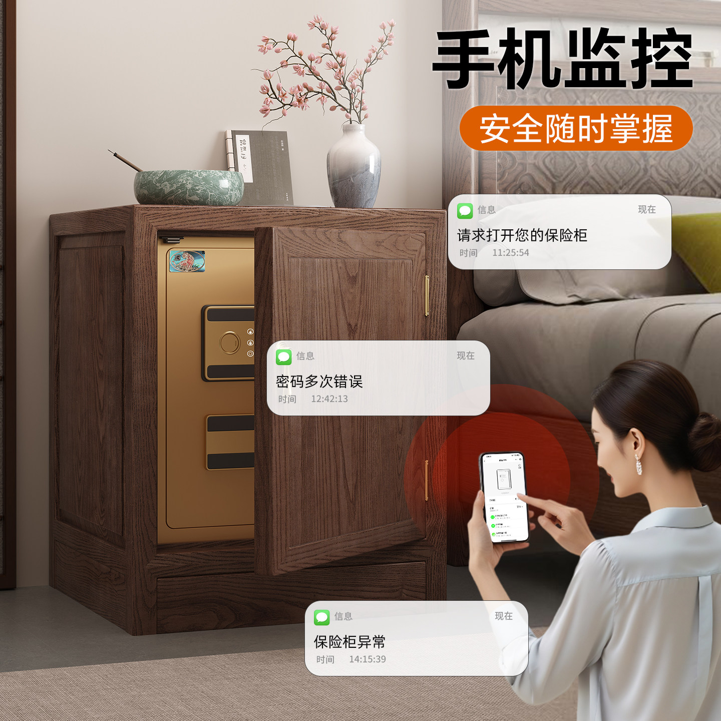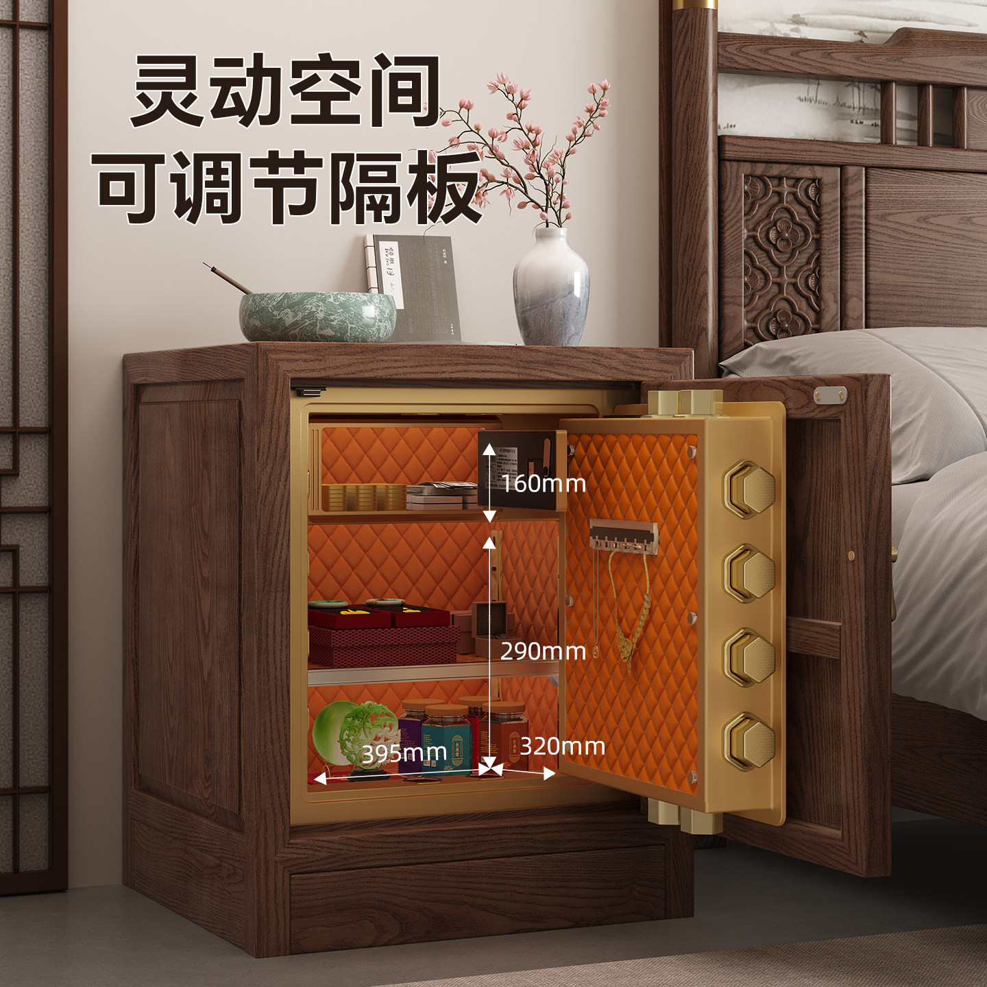 虎牌保险柜实木床头柜一体隐藏式家用防盗智能指纹密码搬不走2025新款中式大空间3c认证卧室存钱小型保险箱