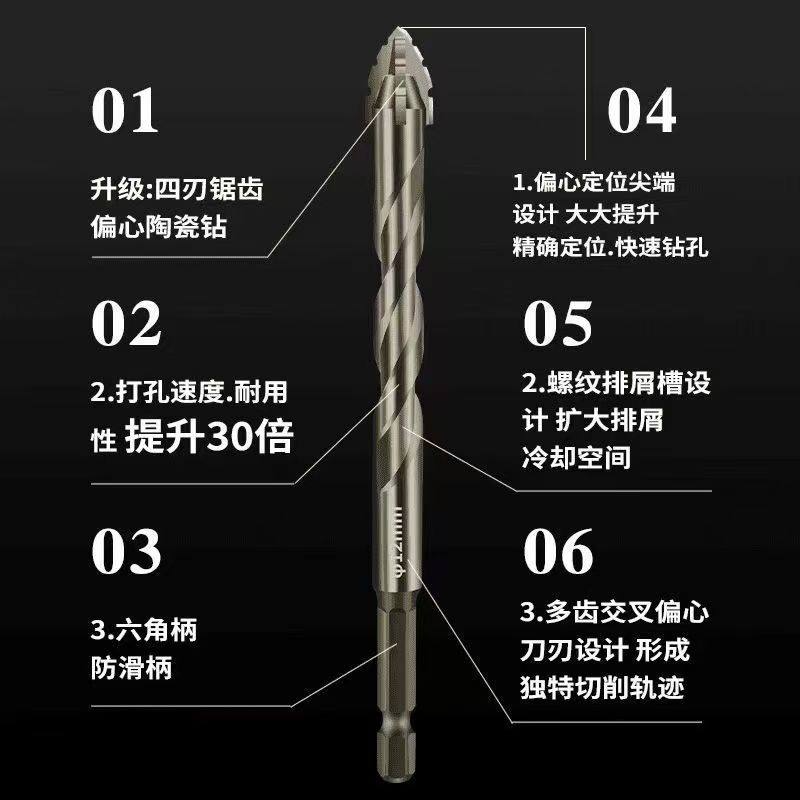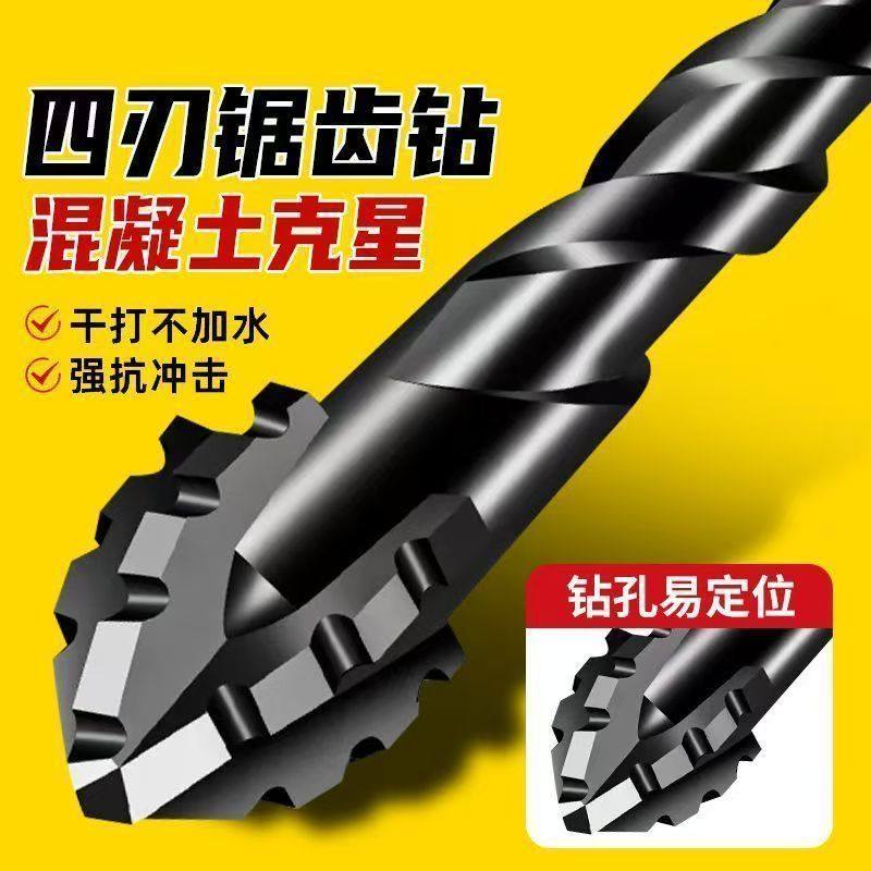 硬钨钢合金锋齿钻四刃新款错位锯齿钻干湿两用打孔钻六角柄木材