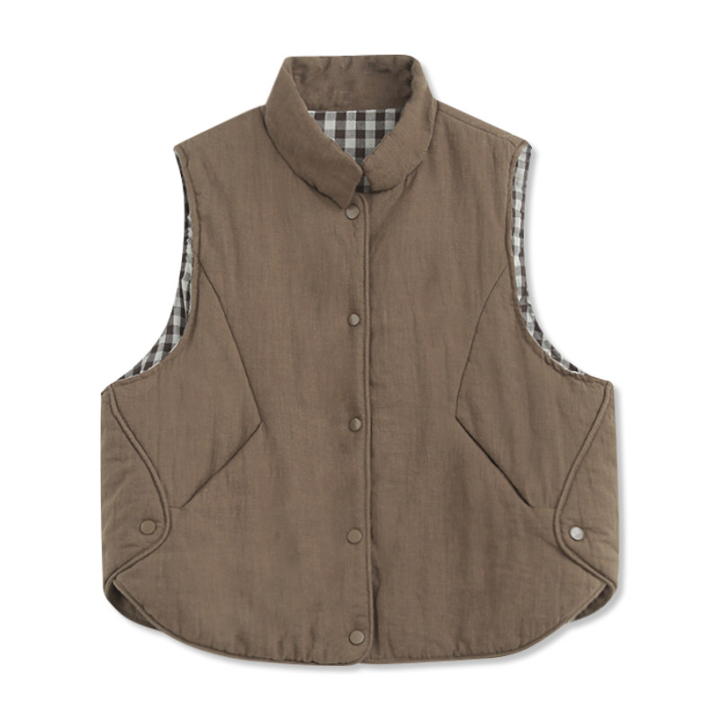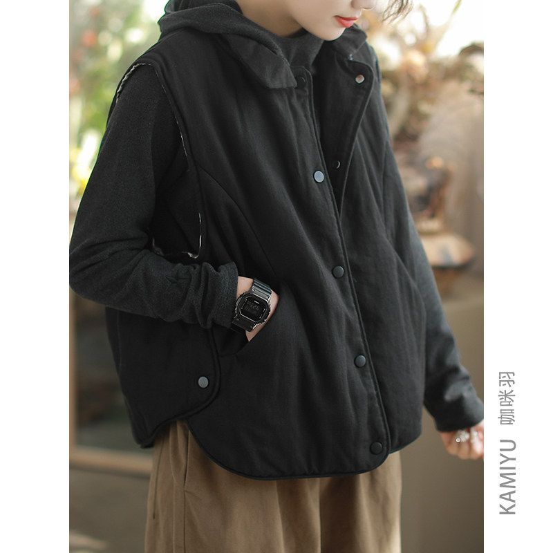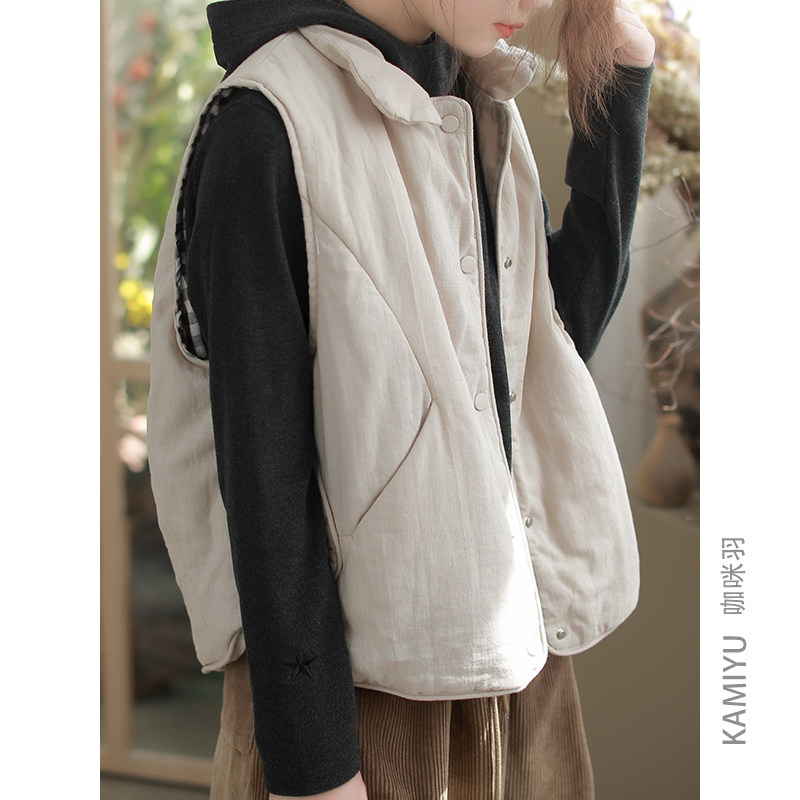 咖咪羽 专柜品质 新款亚麻时尚复古无袖夹棉休闲女装马甲棉服外套